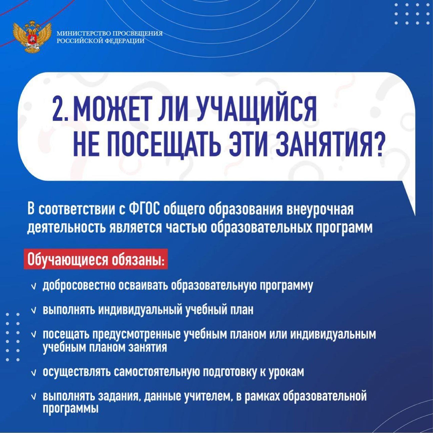 «Новые уроки „Разговоры о важном“ обязательны для посещения, поскольку внеурочная деятельность — часть образовательных программ, разъясняет Минпросвещения», — говорится в сообщении РИА «Новости».