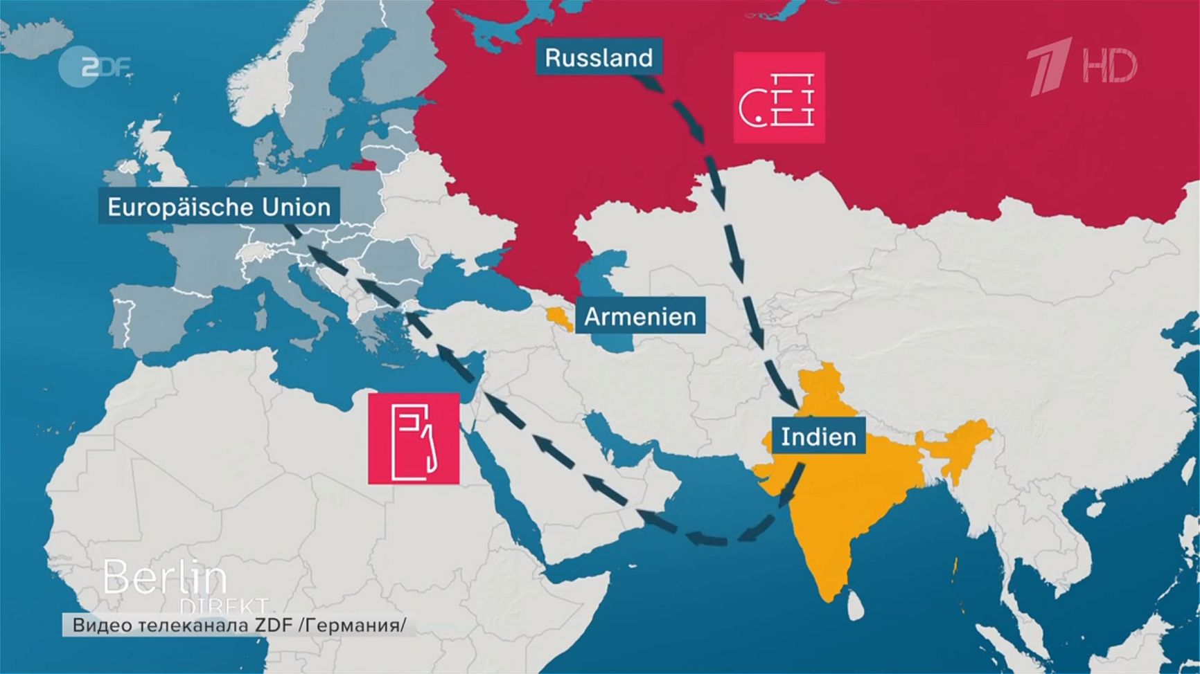 Поставки из Индии увеличились на 46 000 баррелей в день, что равно 6216,4 т. В месяц в среднем это 189 600 т, причем эти цифры включают не только дизельное, но и реактивное топливо. А до эмбарго, напомним, Россия поставляла в ЕС больше полутора миллионов тонн дизельного топлива в месяц. Зато у Первого канала получилась эффектная картинка с индийским маршрутом.