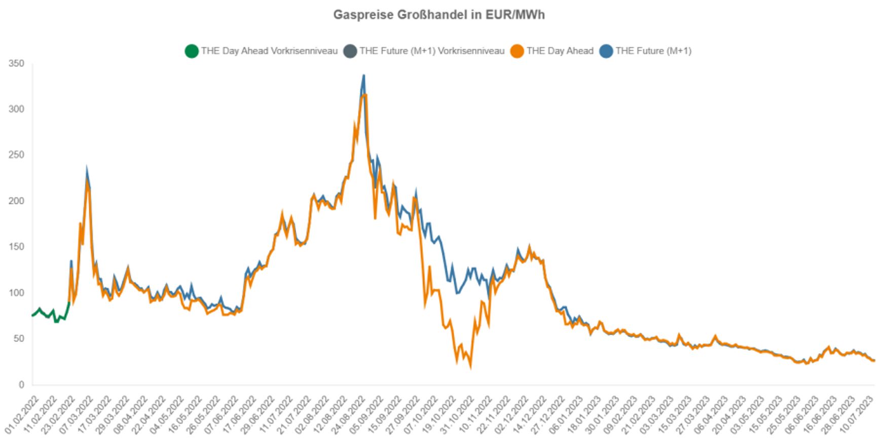 Как видим на графике, опубликованном Федеральным сетевым агентством Германии, цены на газ в Германии в 2023 году держатся на уровне ниже довоенного.: