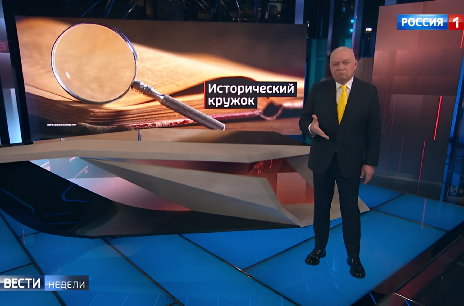 Затем Киселев поделился со зрителями воспоминаниями о своих родственниках-украинцах, которых в России никто не притеснял по национальному признаку, а дед, репрессированный при Сталине и погибший в лагерях, пострадал не из-за национальности, а из-за дворянского происхождения. Вот только история одной семьи — не самое сильное доказательство отсутствия притеснения в стране, где Екатерина II в секретном наставлении генерал-прокурору Сената требовала «привести Малую Россию, Лифляндию и Финляндию к тому, чтоб oни обрусели и перестали бы глядеть как волки к лесу», при Александре II запрещали книгопечатание, спектакли и преподавание на украинском языке, а уже при Путине закрыли единственную в Москве украинскую библиотеку и приговорили ее директора к условному сроку за «возбуждение ненависти либо вражды».