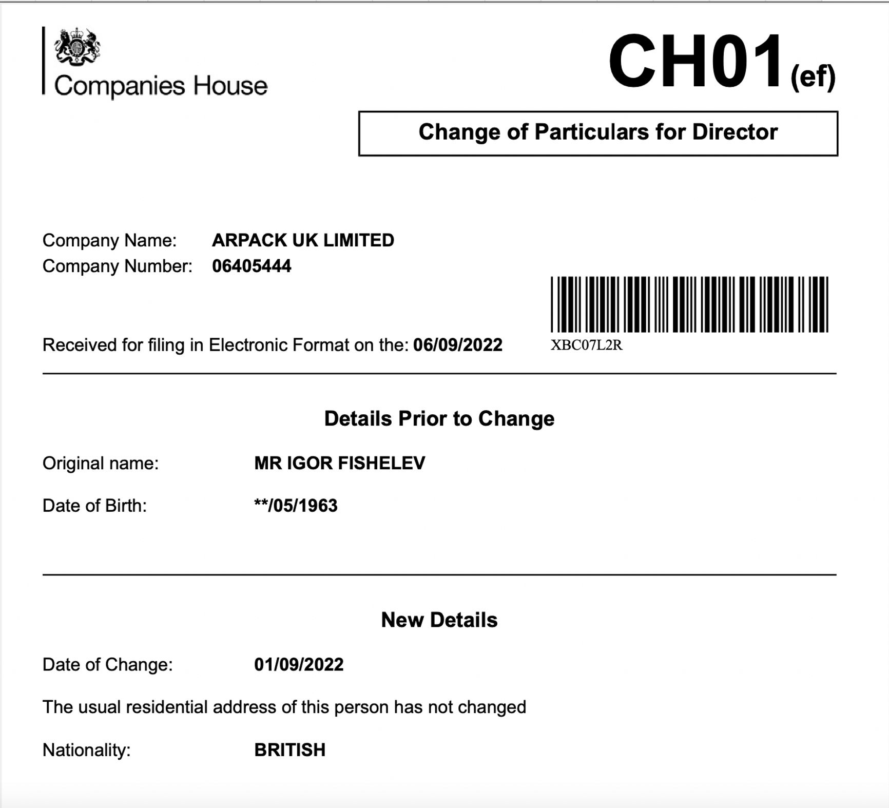 Как обнаружил The Insider, Фишелев-старший владеет в Лондоне компанией Arpack UK Limited. В 2022 году, во время полномасштабного вторжения России в Украину, он стал фигурировать в документах компании уже как гражданин Великобритании.