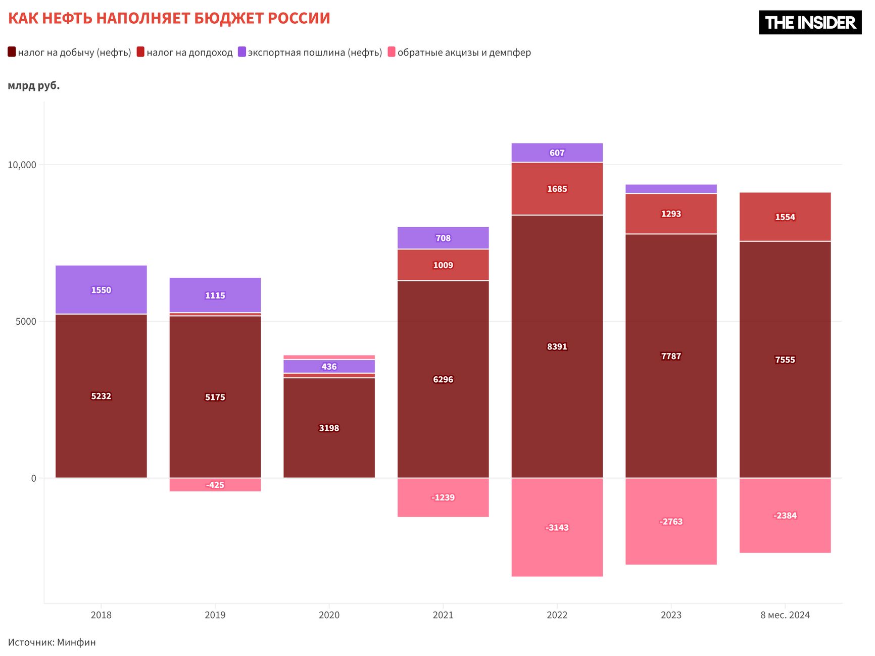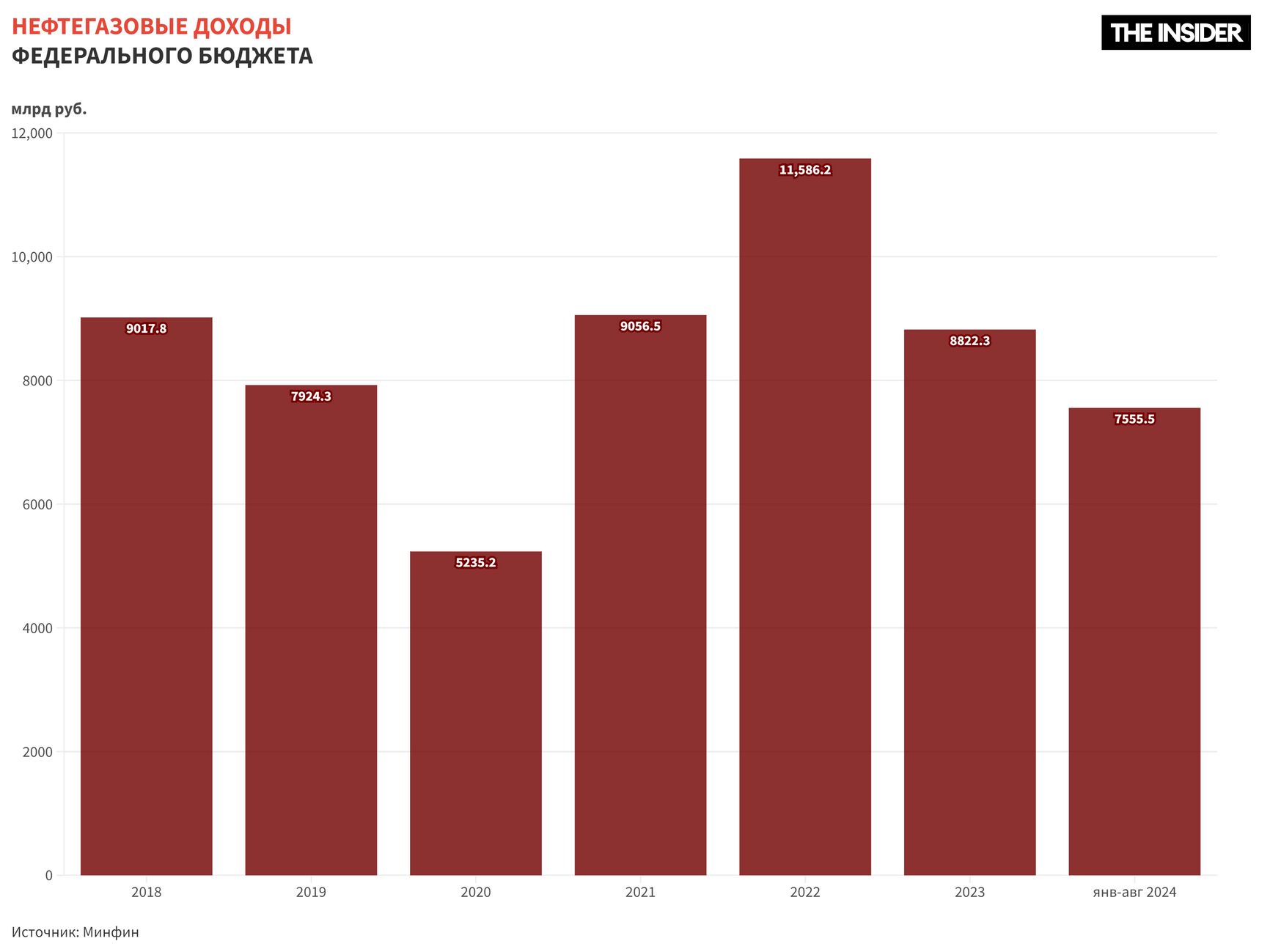 Поступления от нефти и газа в федеральный бюджет только за восемь месяцев 2024 года составили 7,5 трлн рублей, сообщил Минфин. Это в полтора раза больше, чем год назад, и почти на уровне рекордного 2022 года (тогда к этому времени собрали 7,8 трлн рублей). Собрано уже 69% от запланированных на год нефтяных доходов. И хотя государству даже таких поступлений не хватает на все расходы, которые растут из-за войны, это все же не тот результат, на который рассчитывали западные политики, вводя санкции на нефть.