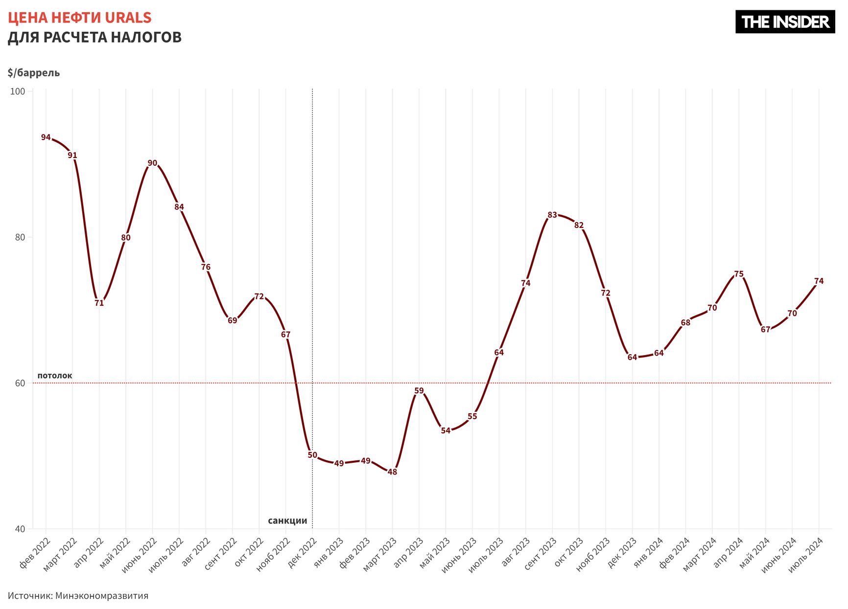 Потолок цен на нефть — это запрет компаниям из стран G7, ЕС и Австралии, обслуживающим морские перевозки (это брокеры, судовладельцы и страховщики) иметь дело с российской нефтью, проданной дороже $60 за баррель.