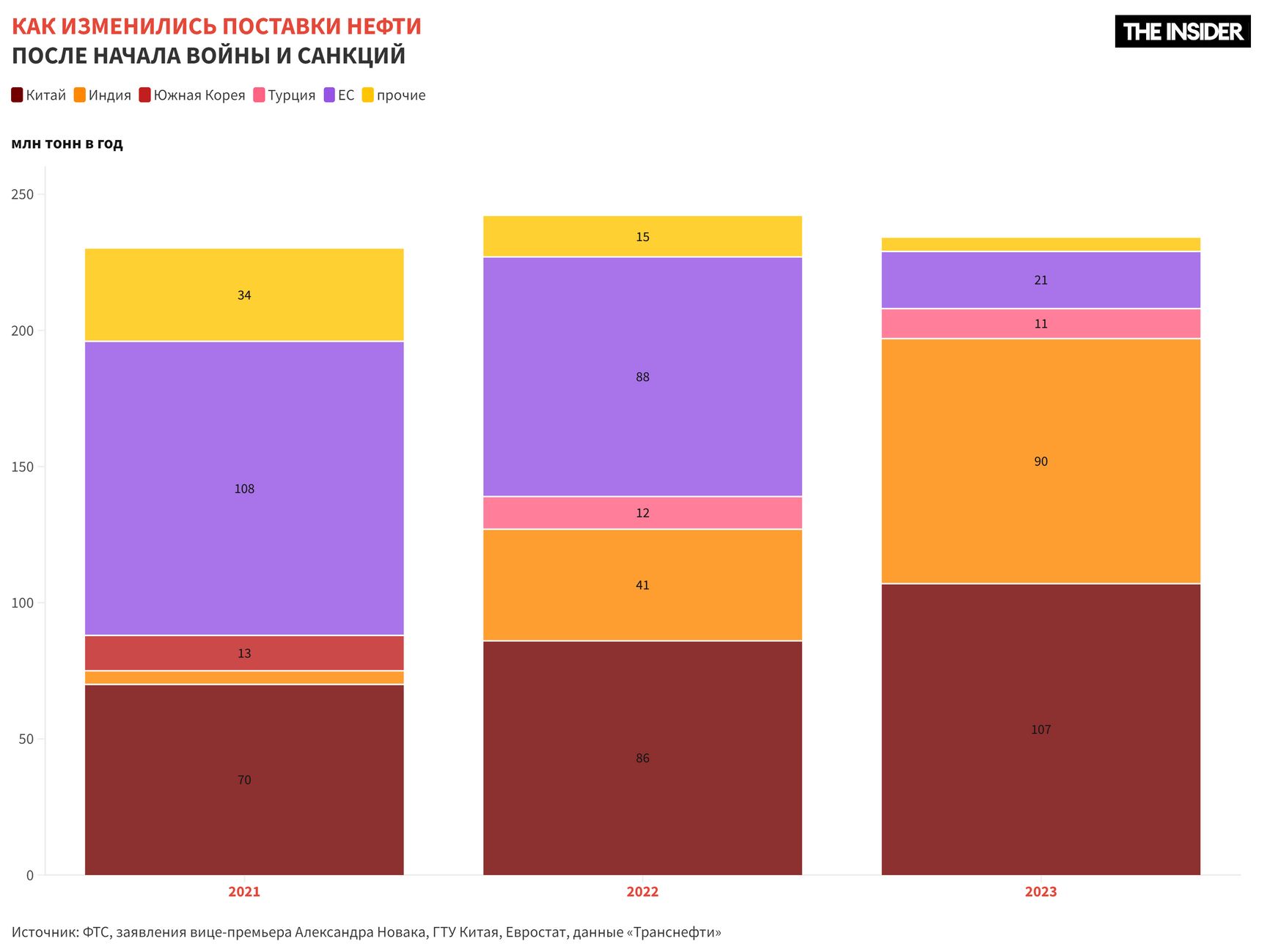 Если до войны из экспортированных 230 млн тонн нефти примерно 60% шло в западном направлении и 40% — в восточном, то «сейчас у нас осталось 15% в западном направлении, а в восточном — 85%», объяснял вице-премьер Александр Новак. На этом ситуация, по его словам, «в принципе стабилизировалась».