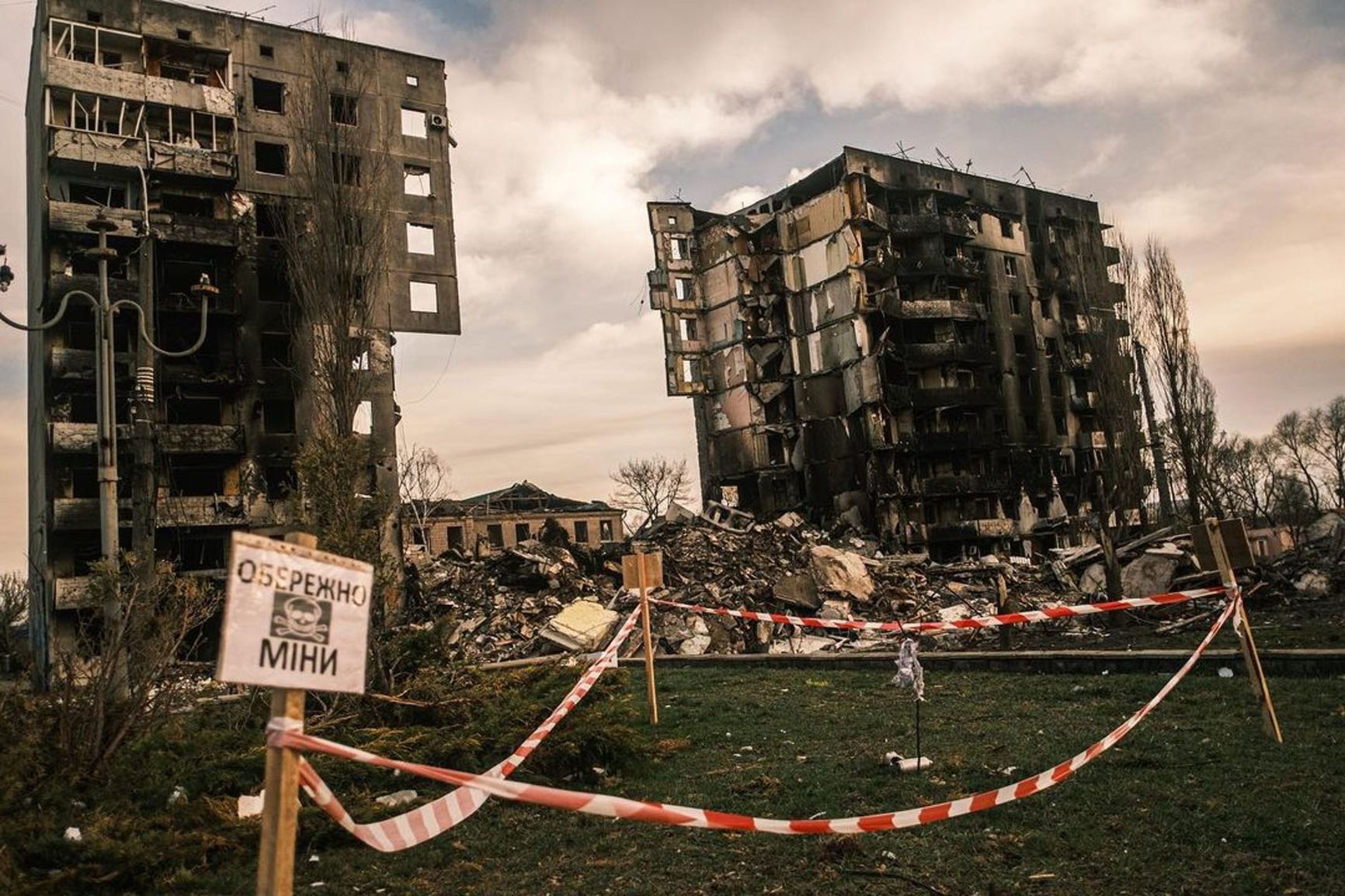 High-rise buildings destroyed by a Russian missile strike, Chernihiv, March 2022