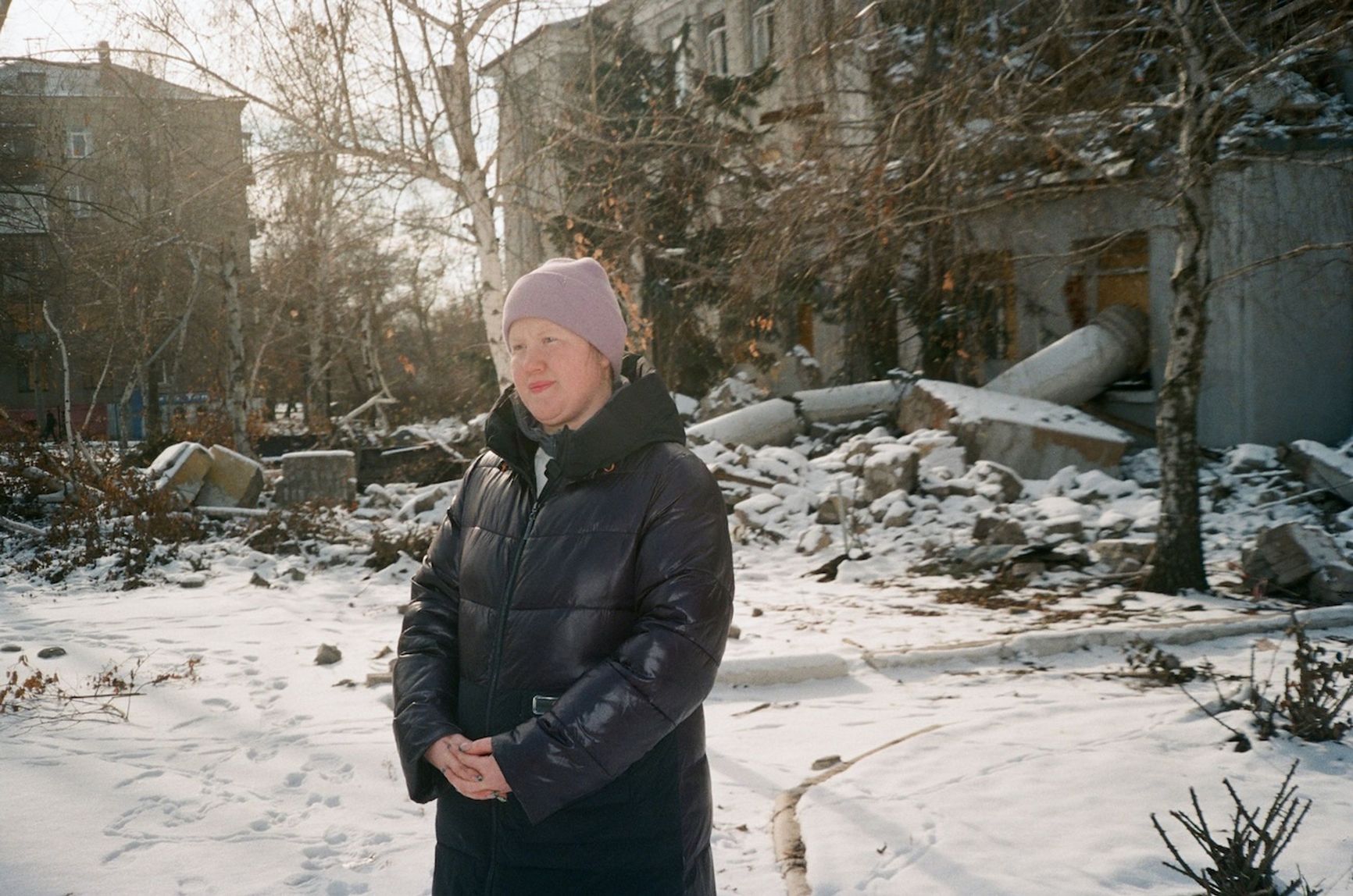 Life here is anything but quiet. When something explodes, the whole house shakes. You can’t sleep. And it’s cold. Houses stand with no windows, no doors, no roofs. We fire up the stove and sit right on it, warming our backs. We just wait — for the weather to get a little warmer, and for this war to finally end.