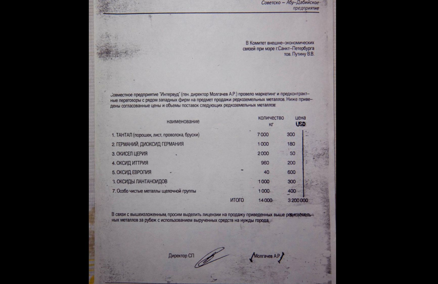 From the documents of the Salye Commission it follows that a total of 14 tons of rare metals were exported by a company called Dzhikop. Moreover, the documents include a request for an export license for one ton of germanium, which was sent by Intervud, but there is no information about the results of the parliamentary review. What kind of company Intervud was and whether it was really related to Belik, Kovalchuk and Yakunin is difficult to ascertain, because the documents of the fly-by-night companies were essentially fictitious, for example, in one instance Intervud is referred to as a Russian-Swedish joint venture, and in another a joint venture between Russia and the UAE, and the signatures of the «executive officers» are inconsistent with one another.