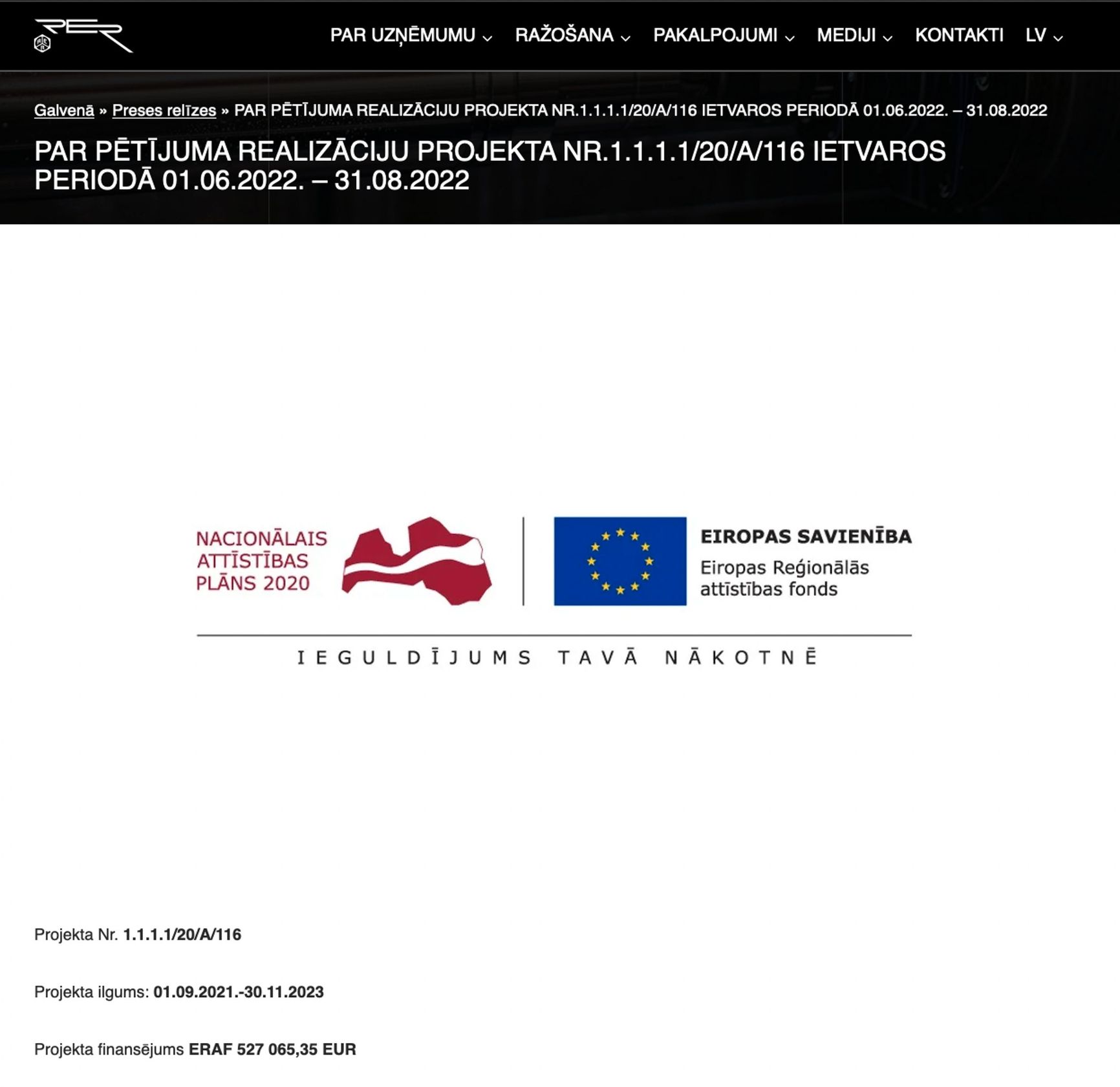 Latvia’s RER also has a subsidiary, LATVO, which is engaged in bulk sales of machinery and equipment. Its equity is 5.5 million euros. The parent company RER has a bigger equity of 8.1 million euros, and its annual turnover reached nearly 33 million euros in 2021.
