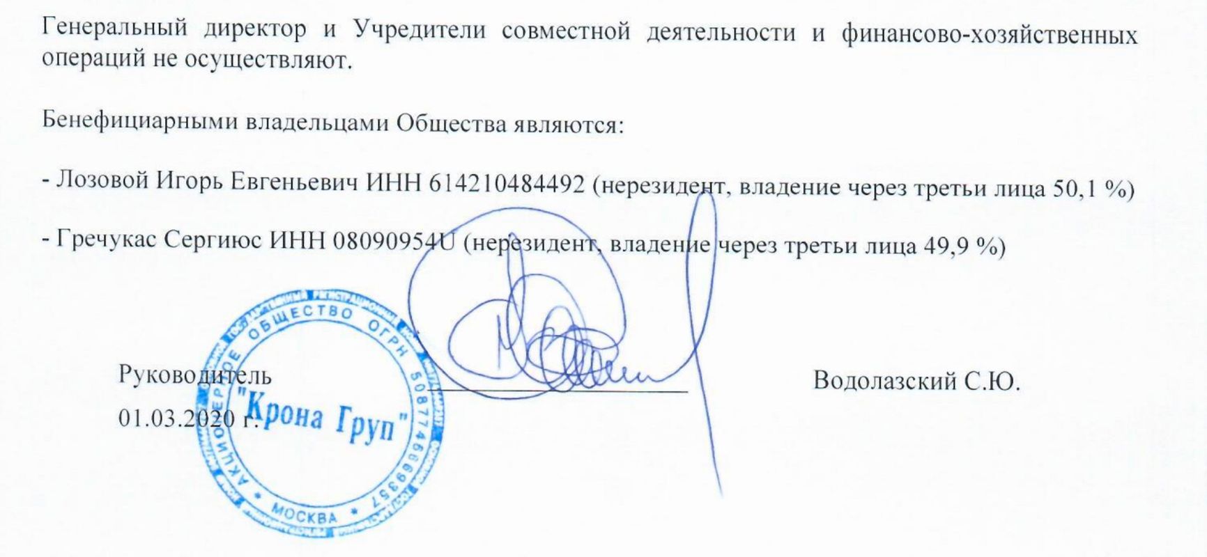 The list of JSC Krona Grup beneficiaries via Cypriot offshore companies as of 2020 includes Igor Lozovoy, a Russian citizen, and Sergeyus (or, spelled alternatively, Sergiyus) Grechukas, a Lithuanian citizen. However, then 80% of Krona Grup JSC was acquired by TransComponent Holding. After which it consolidated its ownership of RER. As The Insider found out, Bokarev and Makhmudov “bought” the company from themselves: for years they controlled it through their nominees.