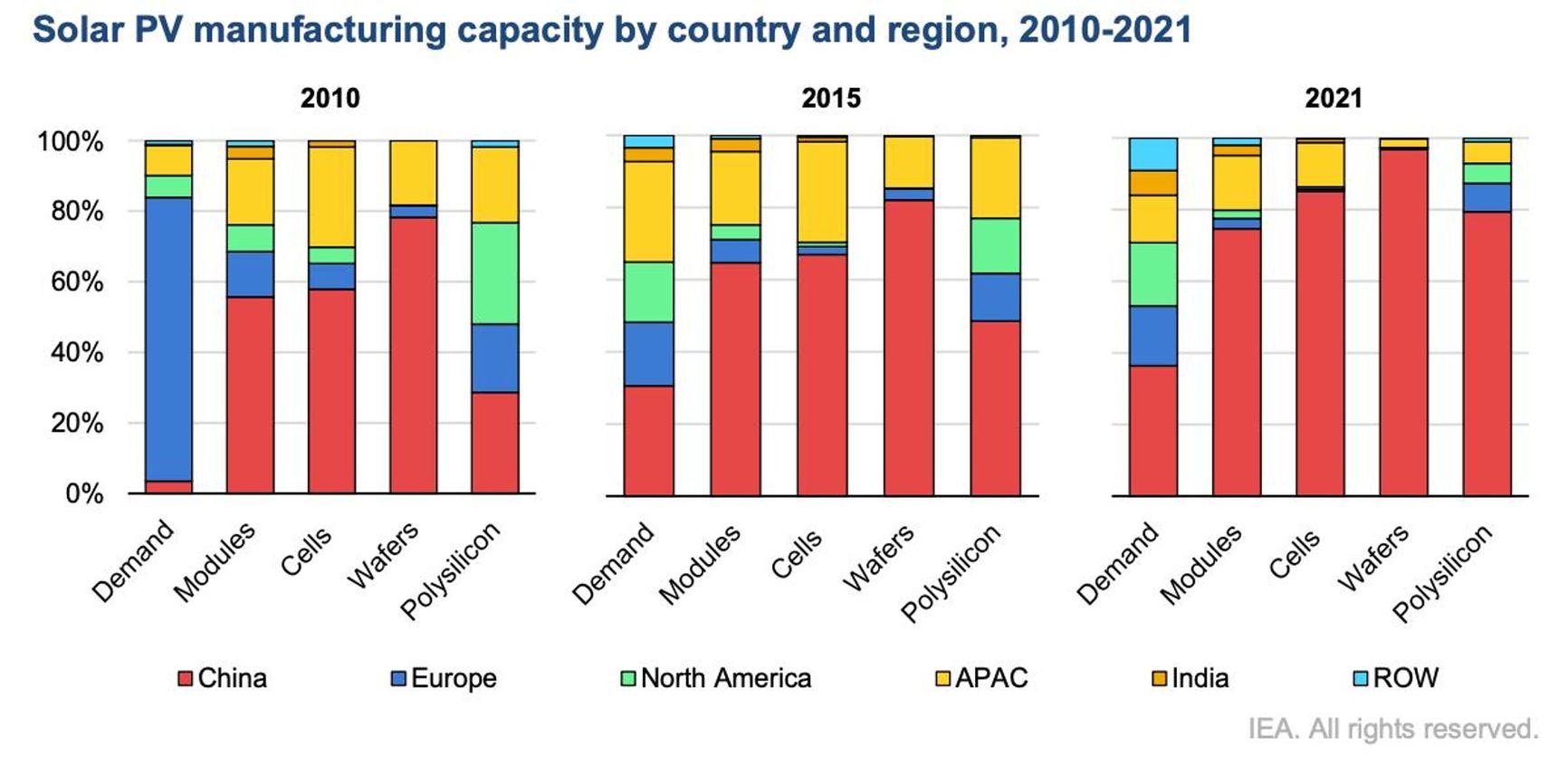In the summer of 2022, the IEA published a report on the potential threat of Chinese domination in the solar panel market. Merely two months later, US President Joe Biden signed the groundbreaking Inflation Reduction Act (IRA), aimed at promoting the growth of the green energy market in the US. The Act is intended to incentivize investors to invest in American renewable energy projects and give local companies preferential treatment over foreign competitors.