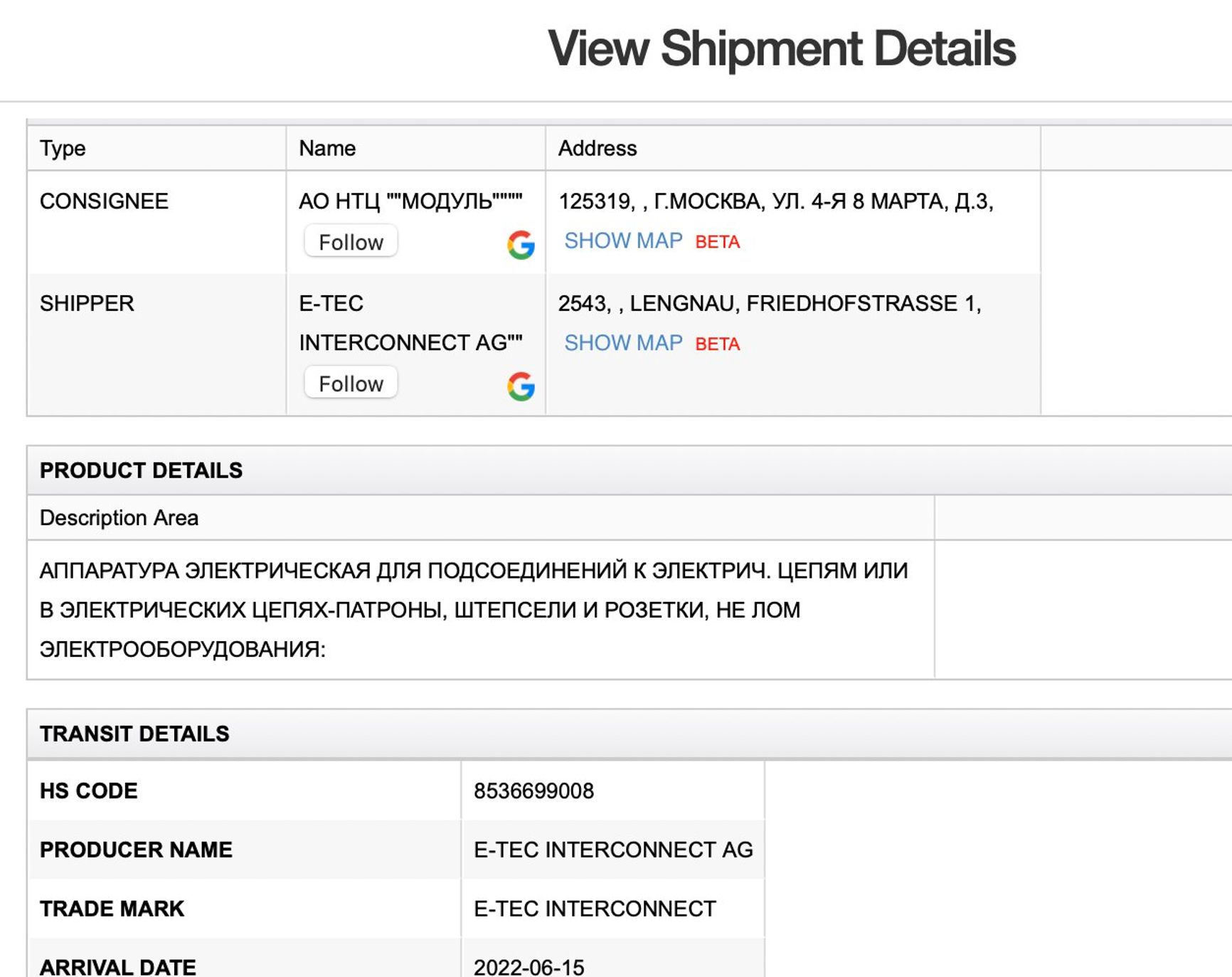 The family of Rosсosmos head Yuri Borisov, who previously supervised the procurement of weapons as Russia's Deputy Prime Minister and a member of the country's Defense Ministry, controls the defense contractor JSC NTC Modul. The Defense Ministry notably purchased a neural network accelerator developed by Modul. The Russian firm buys electronic equipment in Switzerland from E-tec Interconnect AG.