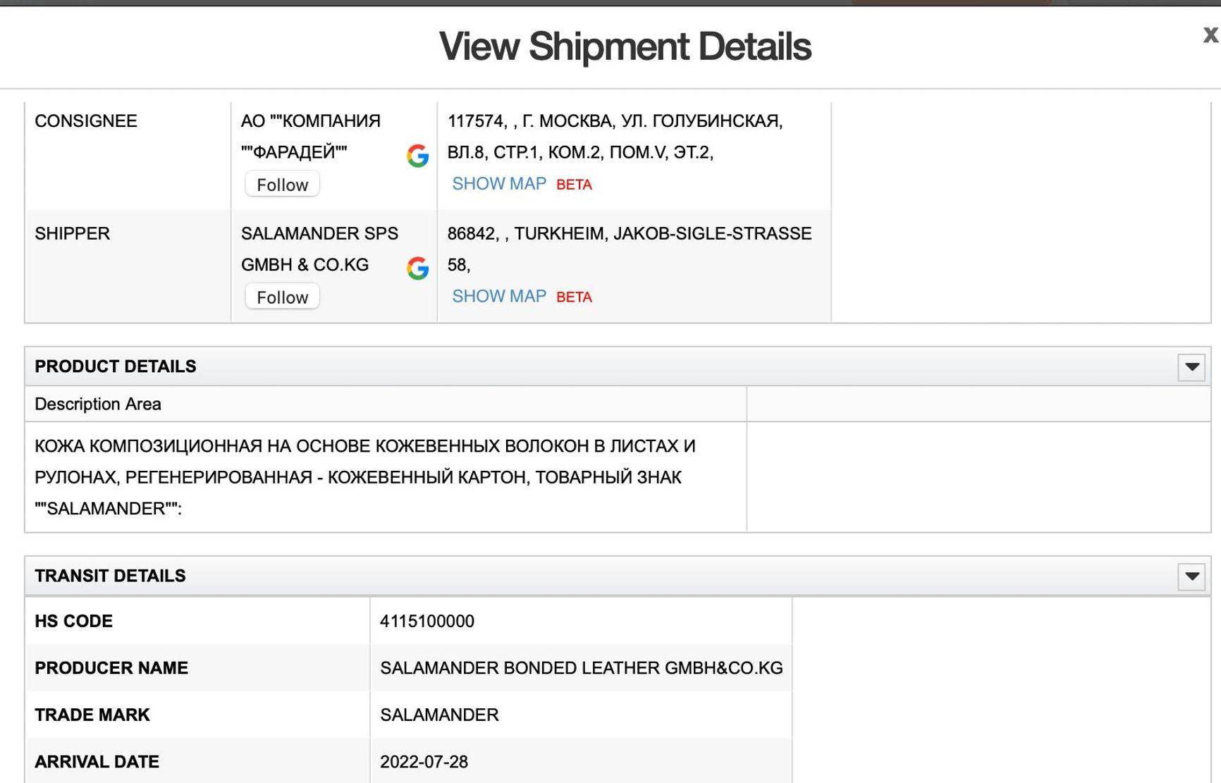 The Italian and German firms continued to supply Donobuv after Russia invaded Ukraine in February 2022. Salamander also sold leather to another Defense Ministry contractor – Faraday (also spelt “Faradei”) – during the war.