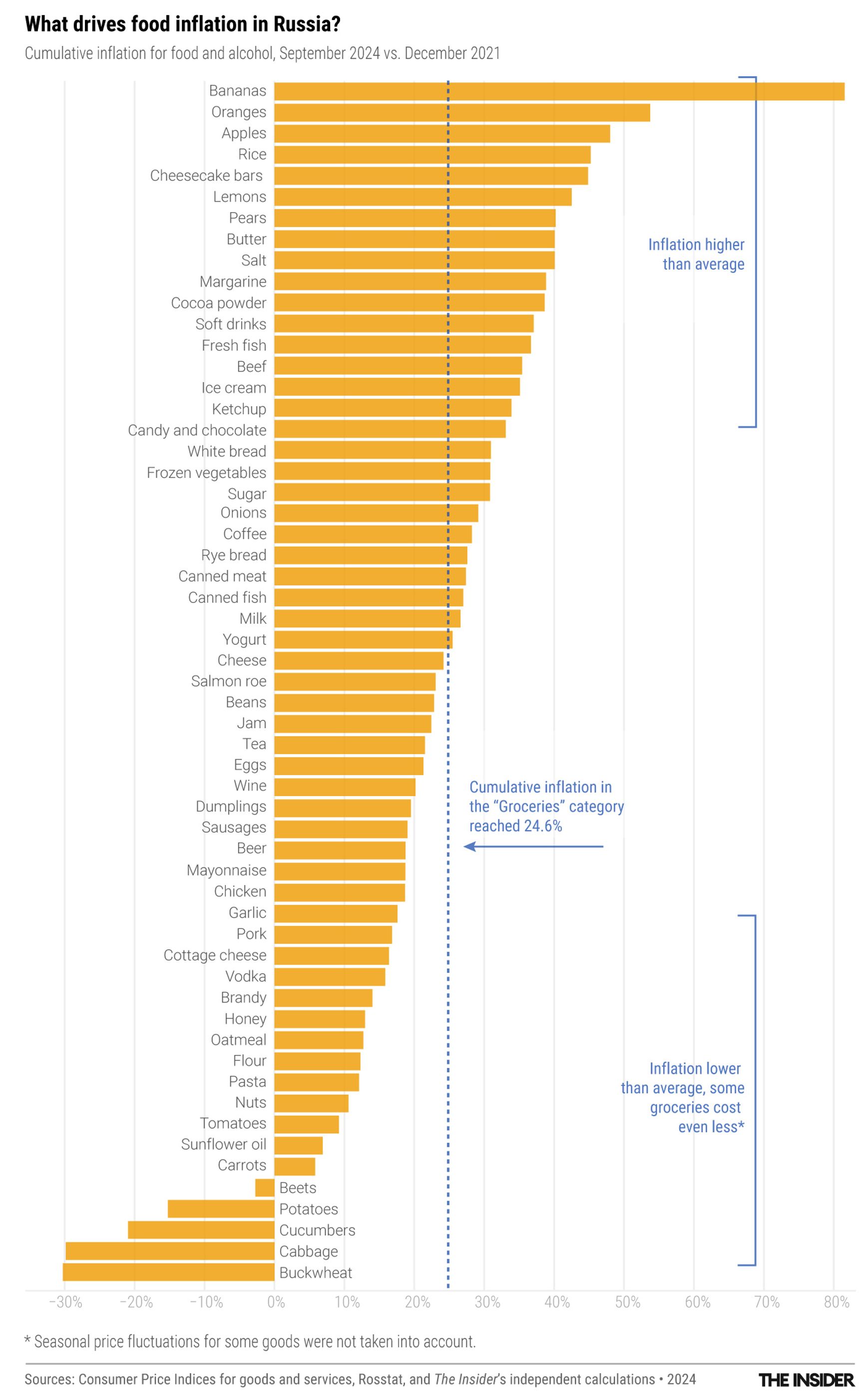 Spending on rent or utility bills, which heavily impacts the poor, is largely excluded from the inflation calculation. Similarly, the rising cost of food — another significant burden for low-income households — is underrepresented. As a result, the income necessary for survival is deliberately understated through manipulative formulas. According to research by the country’s Central Bank, one in four families in Russia barely earns enough to afford food, or even falls short of covering basic nutritional needs. Meanwhile, food prices are increasing faster than most other expenses.