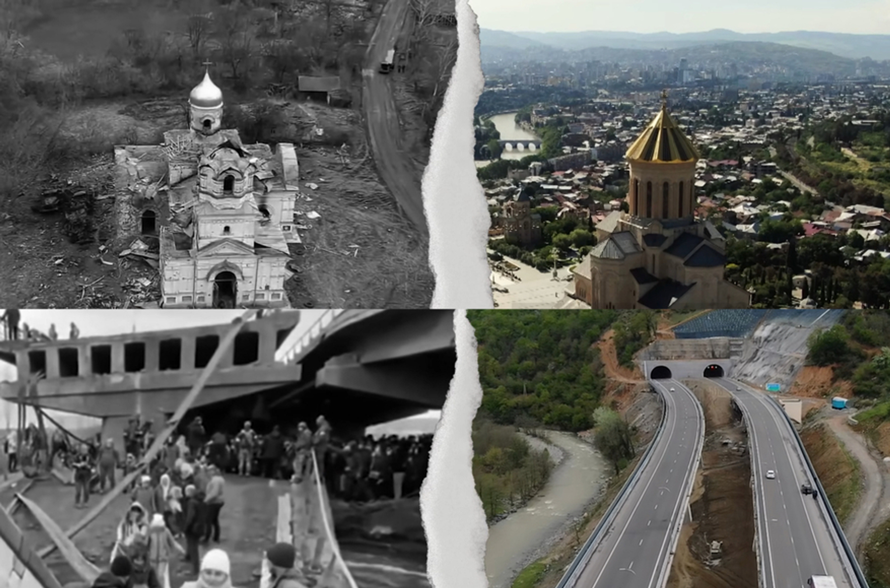 Georgia’s ruling political party, Georgian Dream, has released a campaign video contrasting picturesque shots of the country with footage of destroyed Ukrainian cities. The video shows the aftermath of Russian attacks on sites such as Irpin, Mariupol, Bakhmut, and Kyiv, juxtaposing images of bombed out cityscapes in Ukraine with scenic views of fountains and new buses in Georgia.