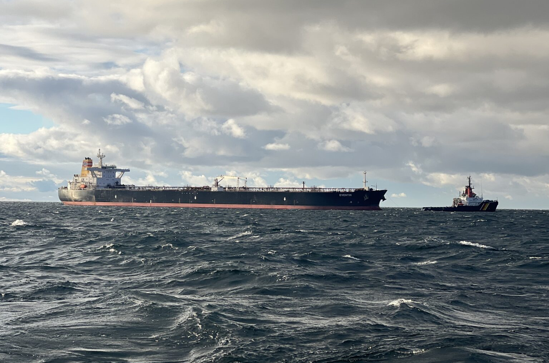Russian “shadow fleet” tanker Eventin was brought under control after being adrift off the Baltic Sea coast north of Rügen, Germany. Photo: gCaptain
