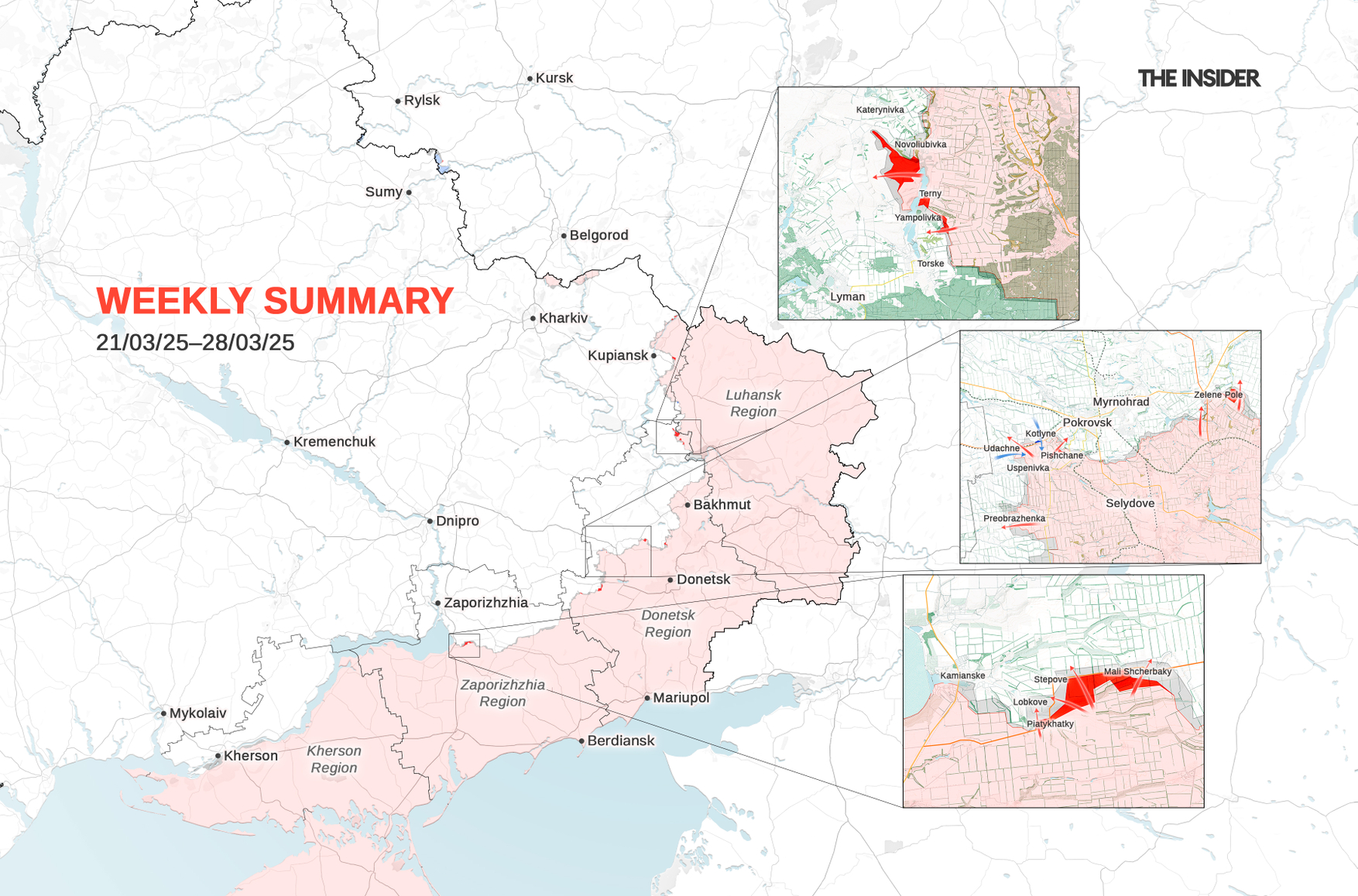 Throughout the week, fighting continued in Belgorod region’s Krasnoyaruzhsky District, particularly over the border settlements of Demidovka and Popovka. On March 23, Russian war correspondent Vladimir Romanov reported that Ukrainian forces had taken control of Demidovka and posted a video showing strikes on Ukrainian troops in the village center. He later also claimed that Popovka had been seized. However, according to the authors of the Telegram channel Arkhangel Spetsnaza (lit. “Archangel of the Spetsnaz”), after a series of back-and-forth engagements, Ukrainian forces still maintained a presence in both Demidovka and Popovka, although they were unable to advance further. Meanwhile, war correspondent Andrey Filatov complained about “chaos in command” among Russian troops operating in the area.