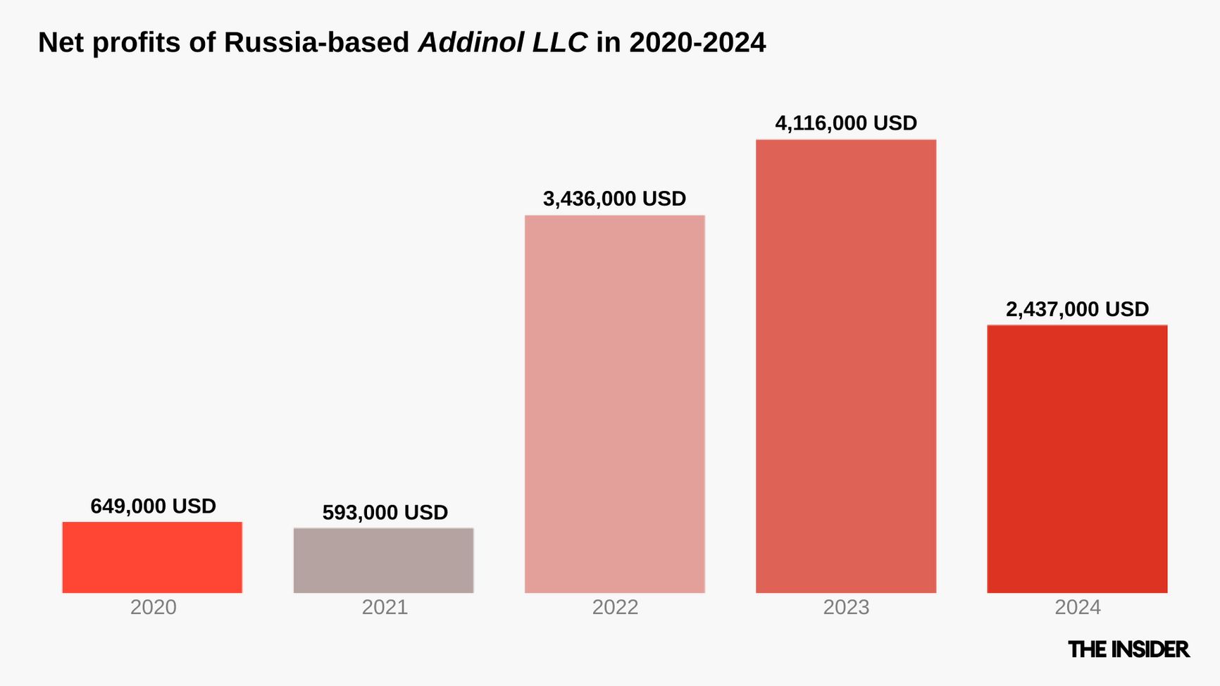 The net profits of Addinol's Russian subsidiary have grown more than fivefold since the start of Russia’s full-scale invasion of Ukraine (when compared to 2021 levels). In the first six weeks of 2025 alone, Russia imported $1.5 million worth of Addinol products. In 2024, such imports totaled $7.5 million. The leading importers are St. Petersburg-based Industrioil LLC and Prom Oil Service LLC (the latter of which is owned by the aforementioned Alexander Tiblen). The suppliers were Turkey's Mix Oto Parcalari and Germany's Badico Trading GmbH.