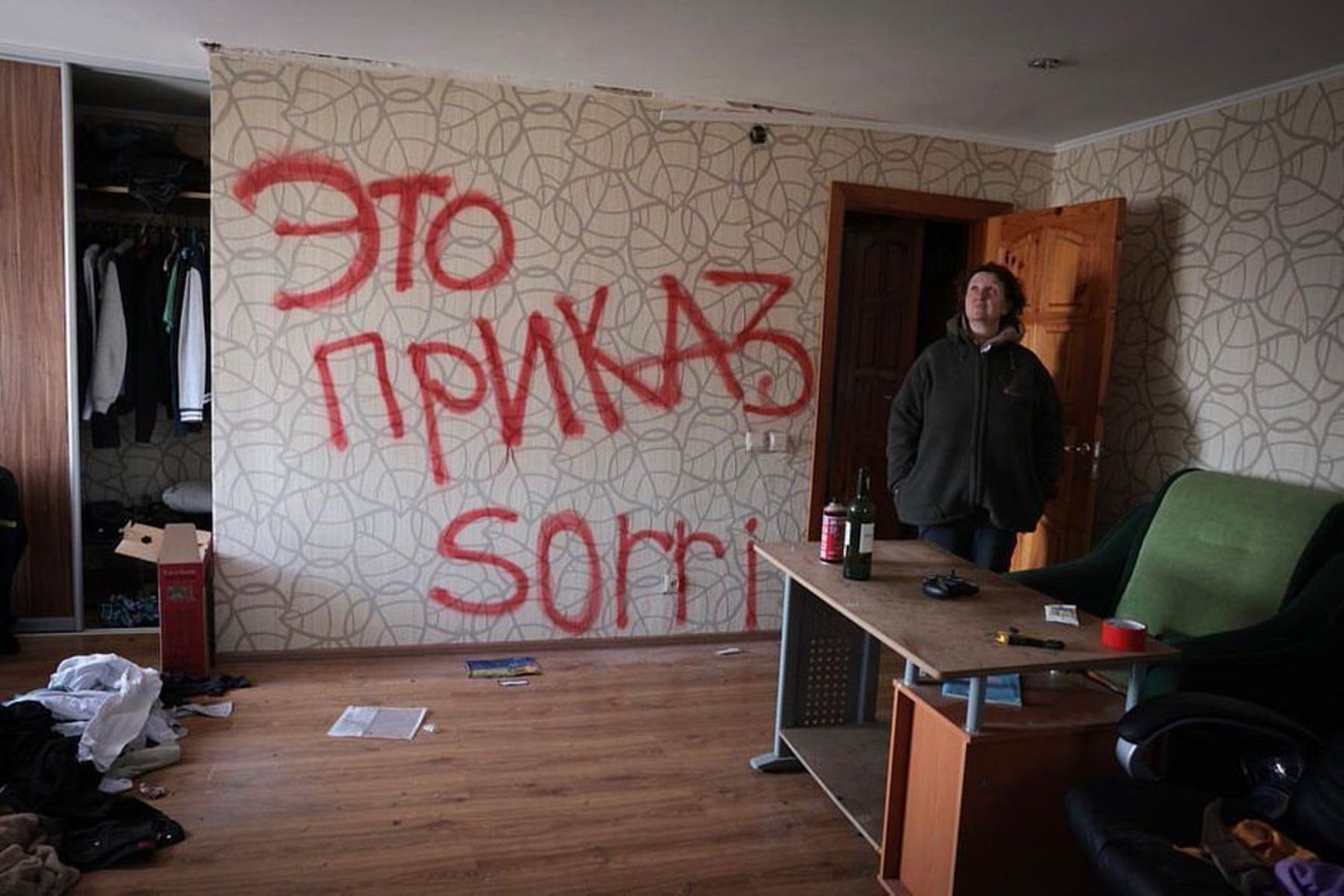 The Russian soldiers` signature is to leave human excrement in visible places. After the Russians had left, Chernobyl workers who returned to their workplaces were surprised to find excrement in almost every office (read about similar messages in a Mediazona compilation that has the appropriate title “They shat where they slept”).