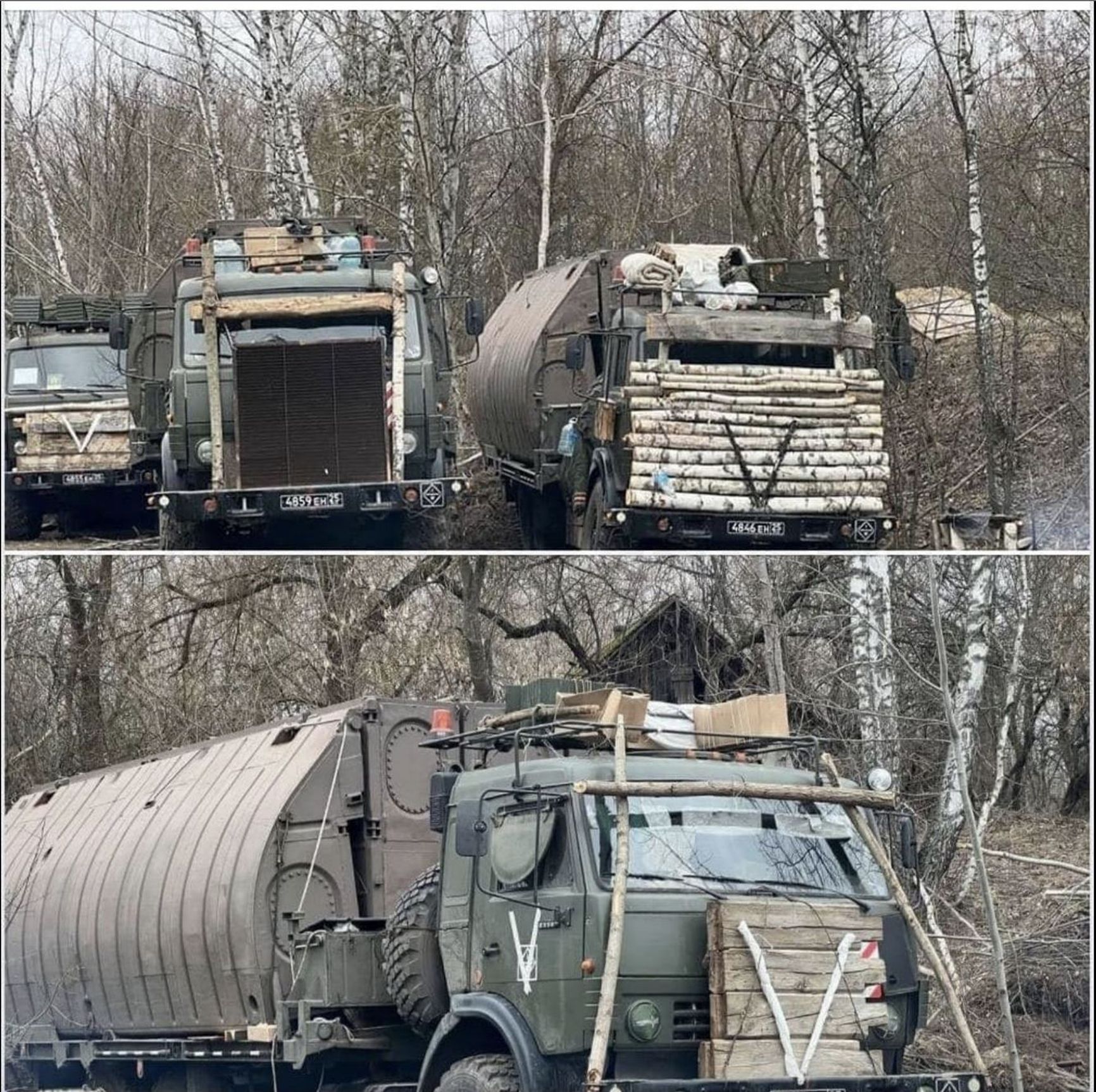 The helplessness of Russian tanks against anti-tank weapons (Javelin, NLAW) is highlighted by attempts to artificially armor the vehicles with logs, sandbags or stones, and metal grates. Wooden protection has also been seen on other armored equipment and trucks, and dynamic protection designed for tanks has been placed on APCs and armored vehicles.