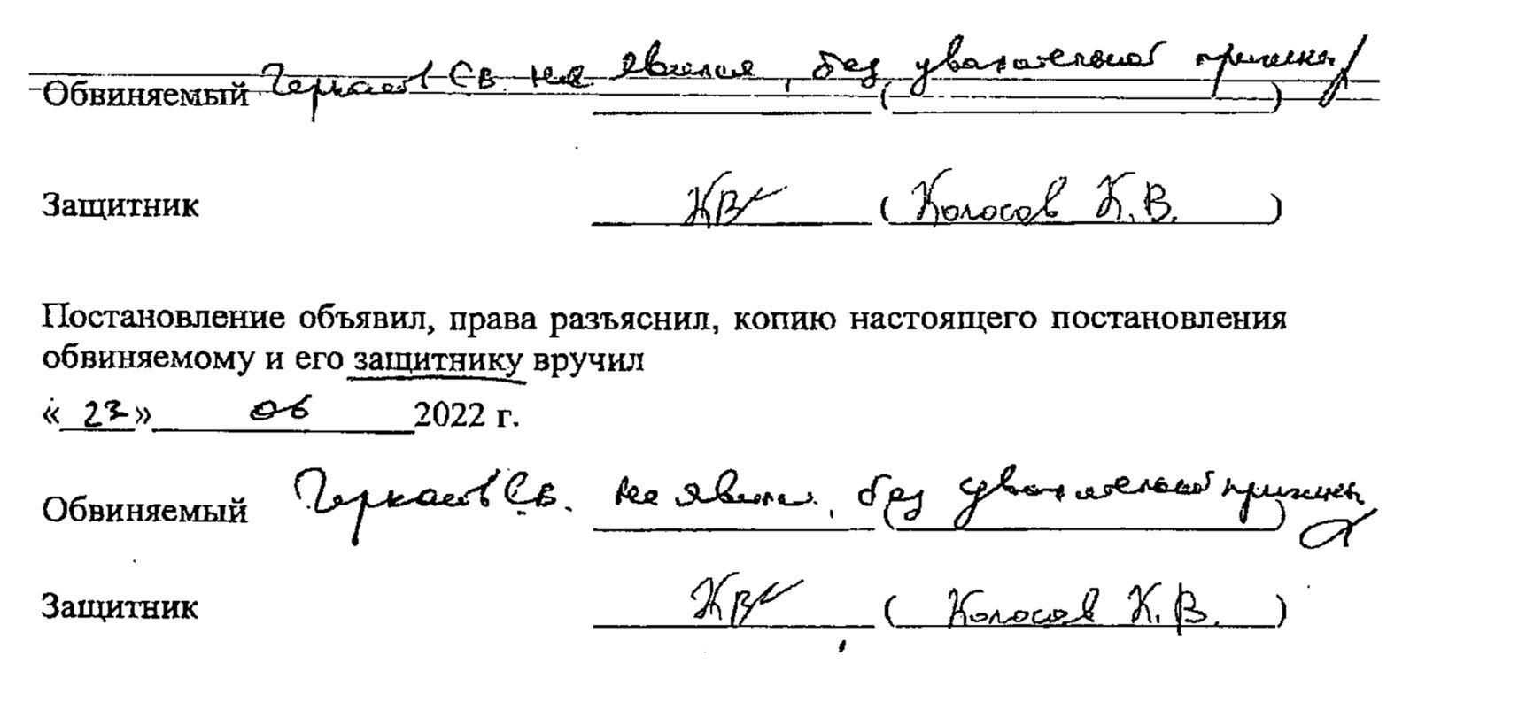 The 20-page indictment provided to the Brazilian authorities is accompanied by a summons, which usually contains the defendant's signature. In this case, the summons is signed by Cherkasov's appointed lawyer with a handwritten note: “Defendant Sergei Cherkasov failed to appear without a valid excuse”.