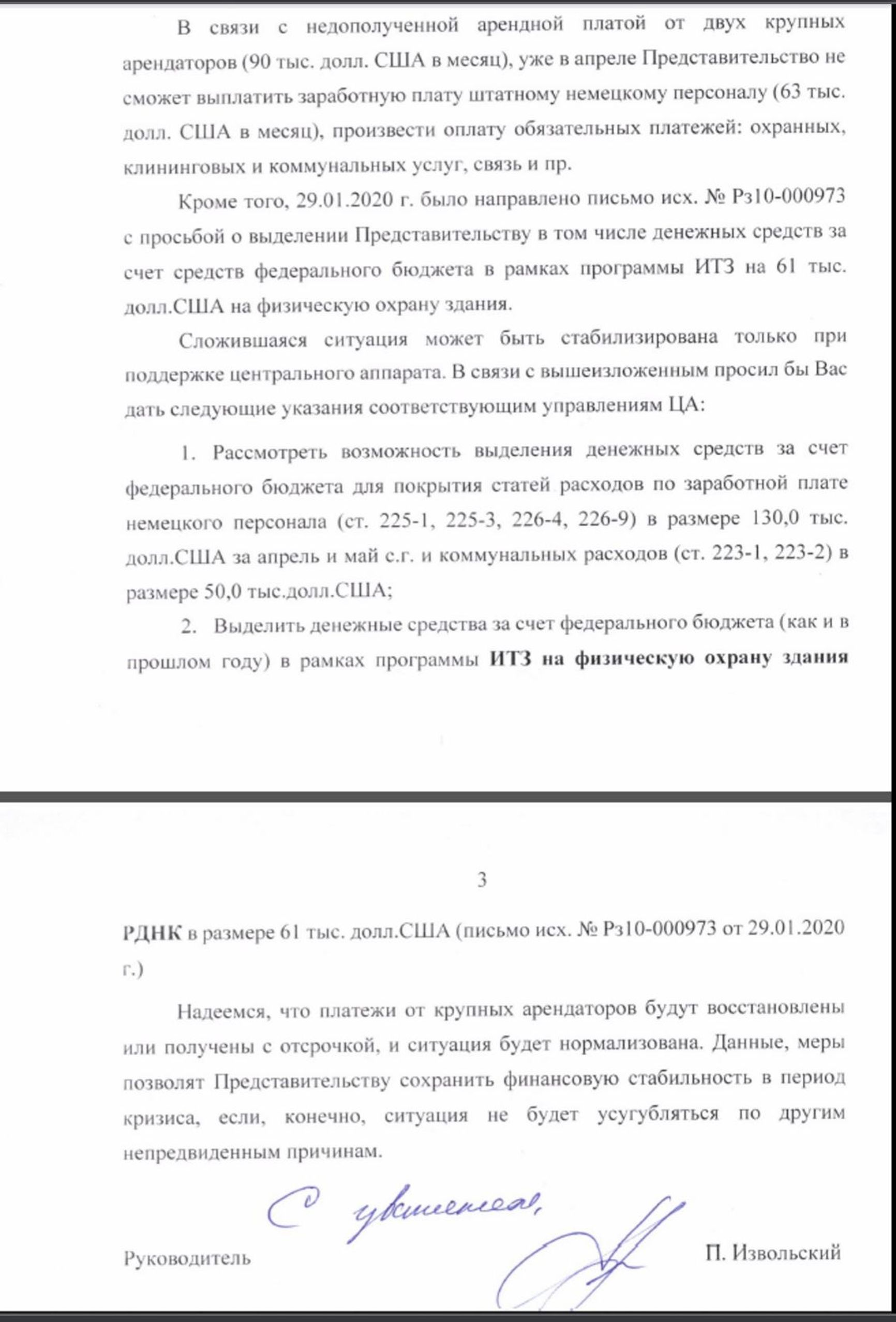 In Berlin, the RHSC had been granted a perpetual use of a 0.68-hectare land plot and a building with a total area of 29,000 square meters housing 64 residential apartments and technical facilities. In addition, it has a two-story villa at 29 Zittauer Strasse in Dresden (a land plot of 0.12 hectares, a building with a total area of 303 square meters), formerly owned by the Western Group of Soviet troops in Germany. Most of the RHSC's living quarters are being leased to German firms. The list of tenants included the fashion store Escada, the company Crist, Kulturverein Tolstoi e.V., the travel agency Ada Reisen, the firms Thyssen-Krupp, GelikonsEuropa, Trofimov-Medien, and the German-Russian Cultural Institute, which occupied a villa in Dresden. And in some cases, the rent was unreasonably low.