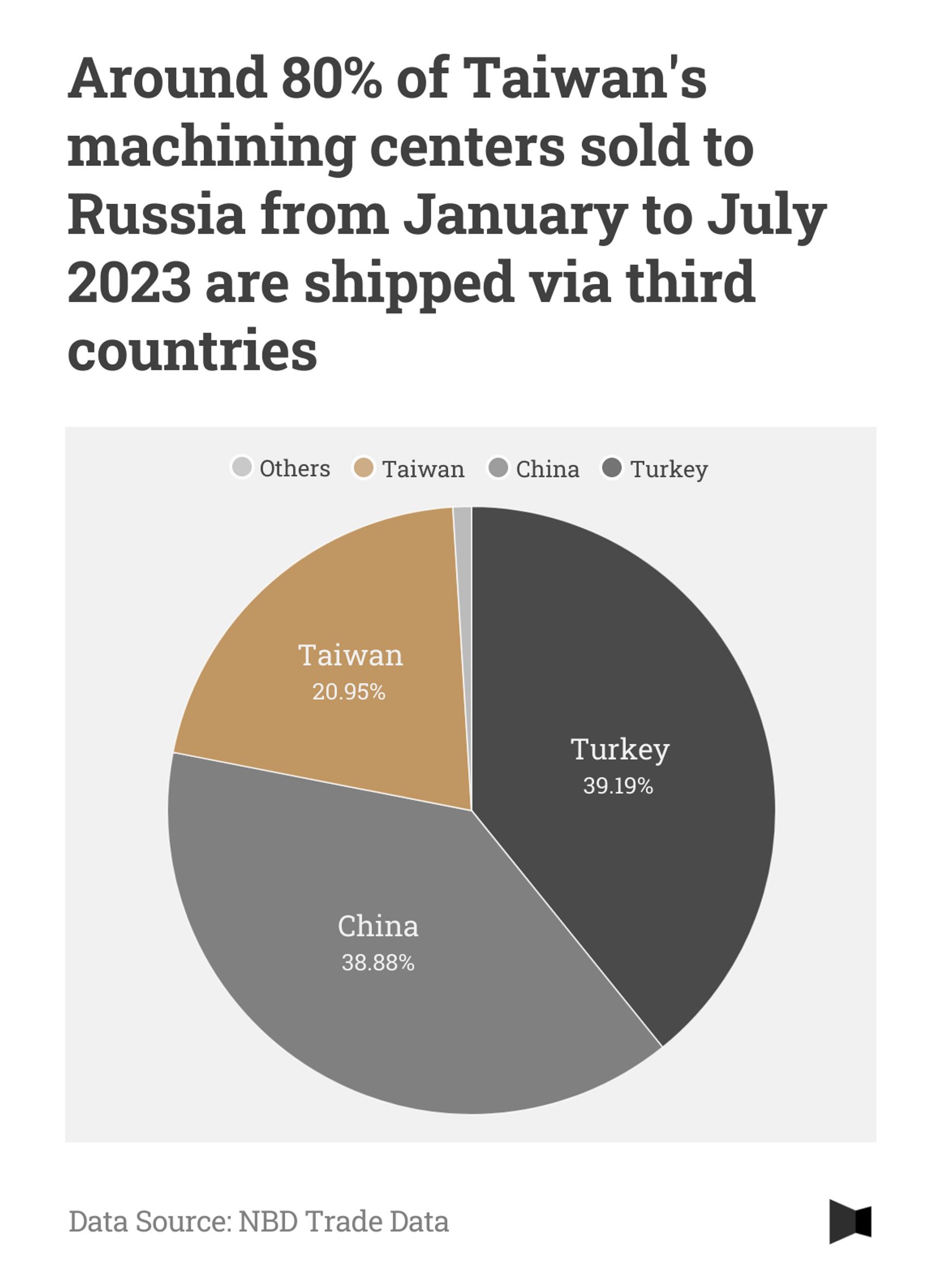According to Russian customs records from NBD (a platform specializing in international trade data collection), between March and September 2023, Russia imported at least 193 Taiwanese-made machining centers worth a total value of nearly $29 million. Close to 80% of the Taiwanese comprehensive processing machines flowing into Russia are transshipped through third countries, with Turkey and China being the top culprits.