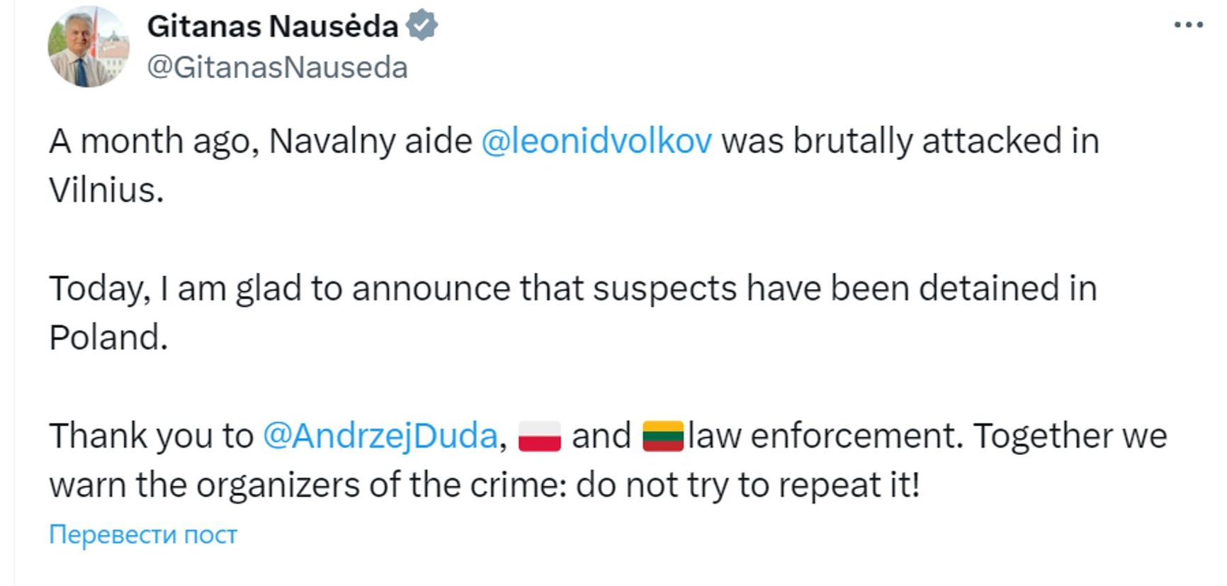 Following a collaboration between Polish and Lithuanian law enforcement, the assailants targeting Volkov was apprehended.