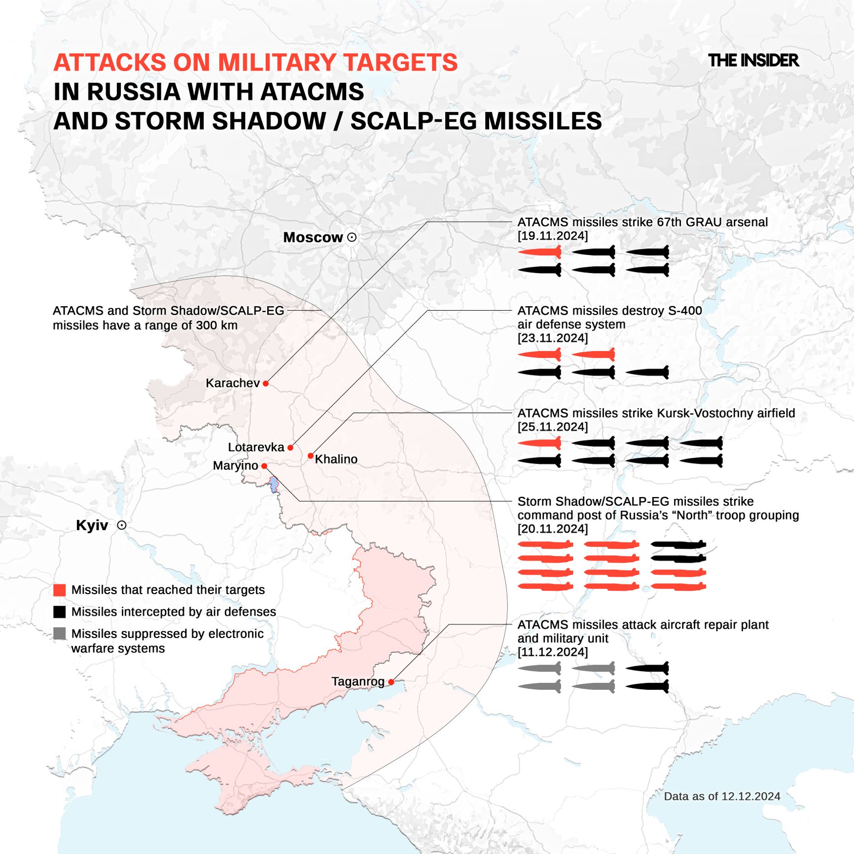 Since the permission was granted, the following instances of ATACMS and Storm Shadow/SCALP-EG use on Russian soil have been reported: