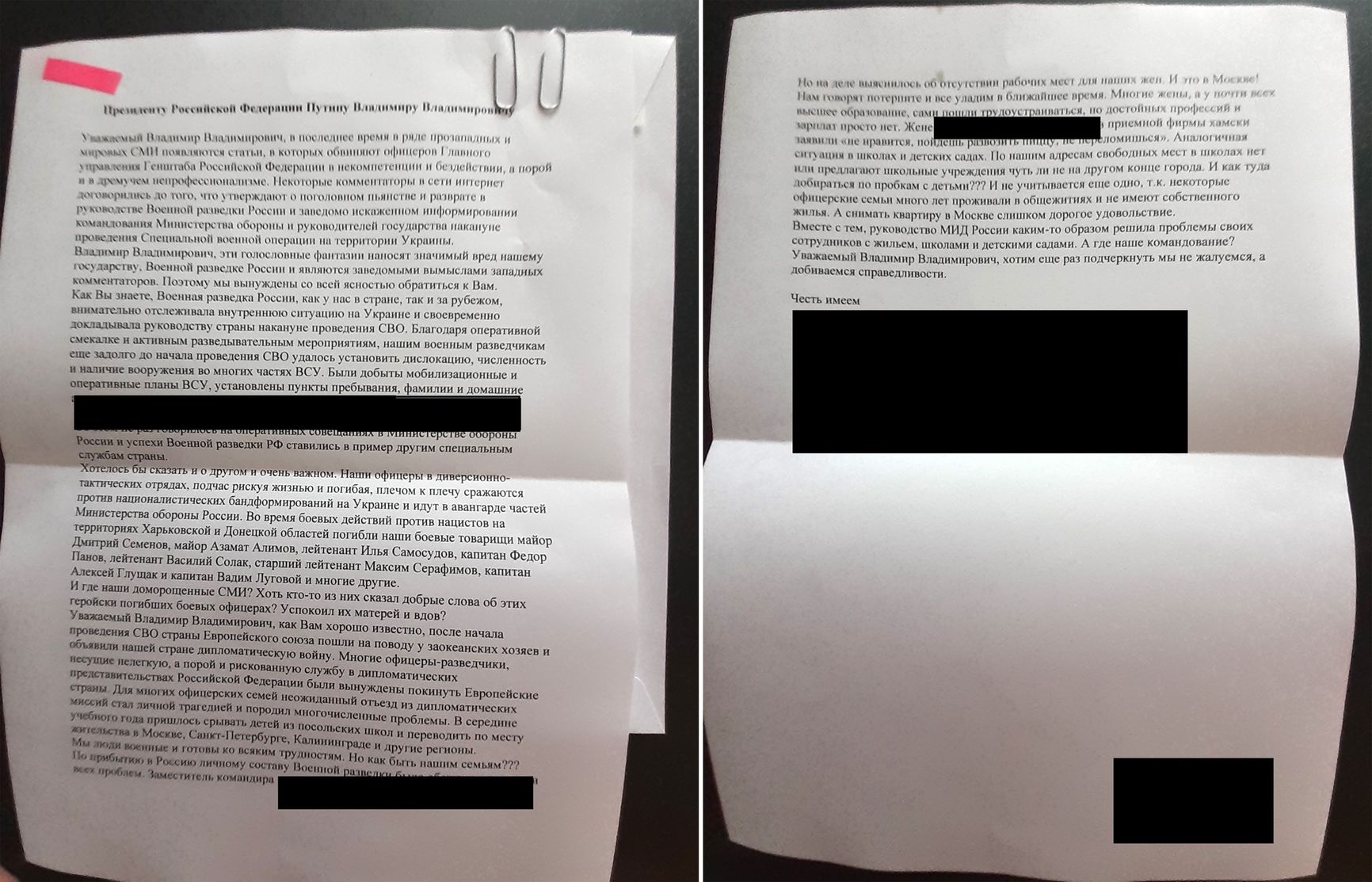 The Insider contacted some GRU personnel whose names are redacted in the complaint, but they stated that they did not sign any collective appeals to Putin. One suggested that “it's not the officers themselves, but their wives who are stirring the pot.”