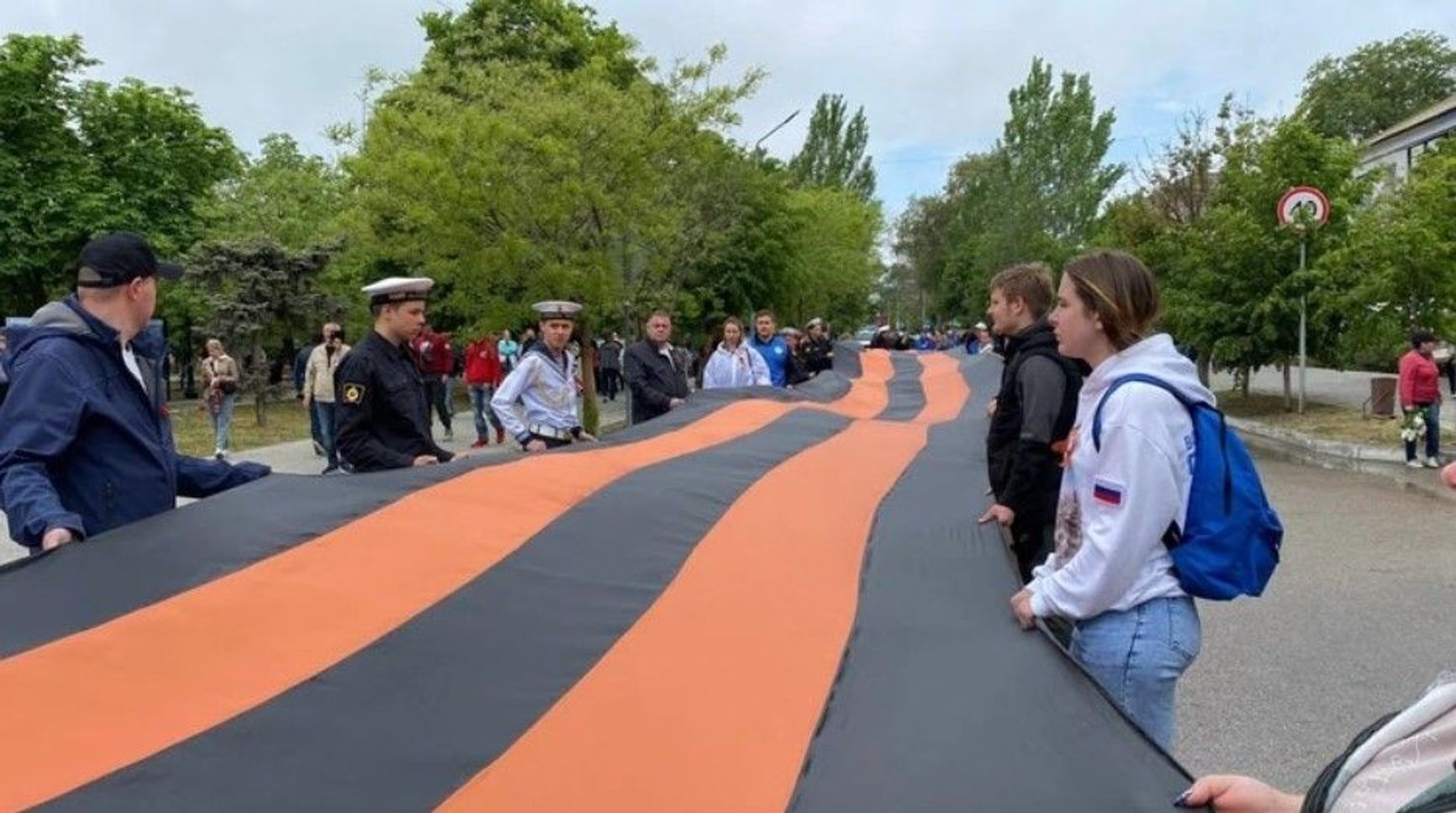 As part of the Unconquered campaign, young residents of Donetsk helped Russian soldiers and “DPR” head Denis Pushilin unfurl “the largest replica of the Victory Banner in the world.” For the sake of Pushilin's security, the military closed off access to the monument, forcing families to stand in line for hours, only allowing passage to those bearing a special permit.