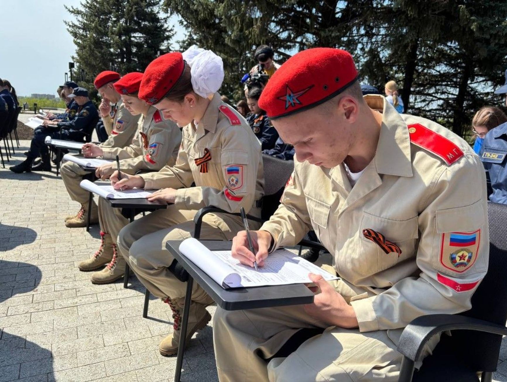 Another opportunity to draw parallels between the two wars came with the nationwide history test “Victory Dictation.” United Russia party chair Dmitry Medvedev ordered that questions about the war in Ukraine be added to the World War II section in order to emphasize the supposed similarity between the two conflicts. Some 18,000 children and adults from the so-called “historic regions” took part in the dictation: over 5,000 in Zaporizhzhia Region, nearly 4,000 in Kherson Region, and around 9,000 residents in the “LPR” and “DPR.” Denis Miroshnichenko, head of the “LPR People’s Council,” said that schoolchildren and students in Luhansk see special meaning in the test: “We know about the heroism of our fathers and grandfathers not just from their stories — we’ve had to face fascism ourselves.”