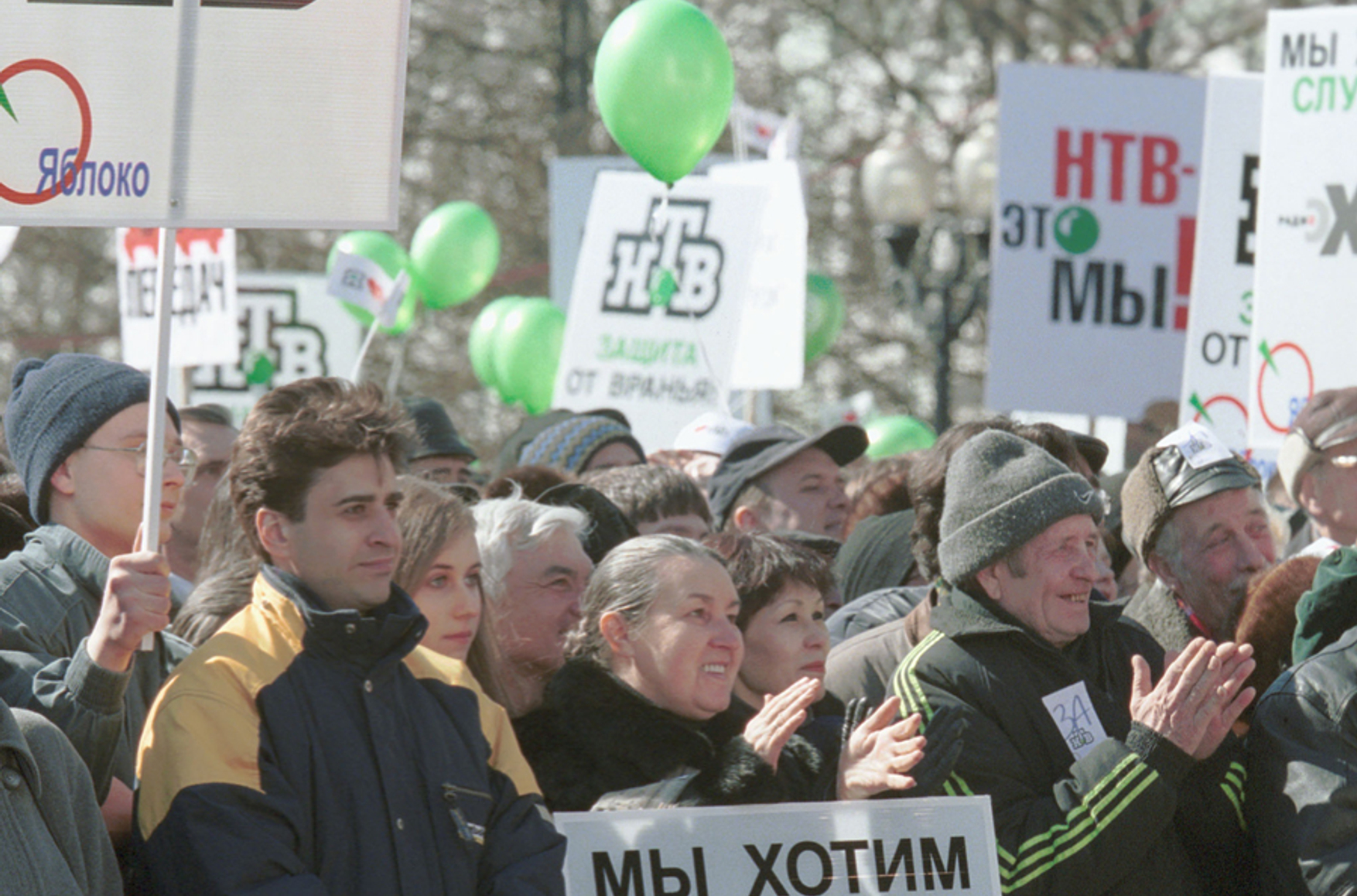 20 тысяч экземпляров этого спецвыпуска бесплатно раздали людям, которые вышли протестовать против захвата НТВ в Москве и Петербурге. Атмосфера, царившая на этих митингах, очень напоминала ту, что была на демократических маршах, проходивших в поздние перестроечные годы перед зданием редакции «Московских новостей». Ирония заключалась в том, что именно «отцы», которых в свое время потеснило поколение журналистов НТВ, встали на его защиту. Целевая аудитория телеканала — энергичные и самодостаточные «дети» шестидесятников — наблюдала за конфликтом вокруг НТВ, как за реалити-шоу, сохраняя хладнокровие и отстраненность — качества, которые все эти годы культивировало в своих зрителях НТВ. Как-никак это же было «нормальное телевидение» для «нормальной страны», пропагандировавшее идею спокойной, частной, буржуазной жизни.
