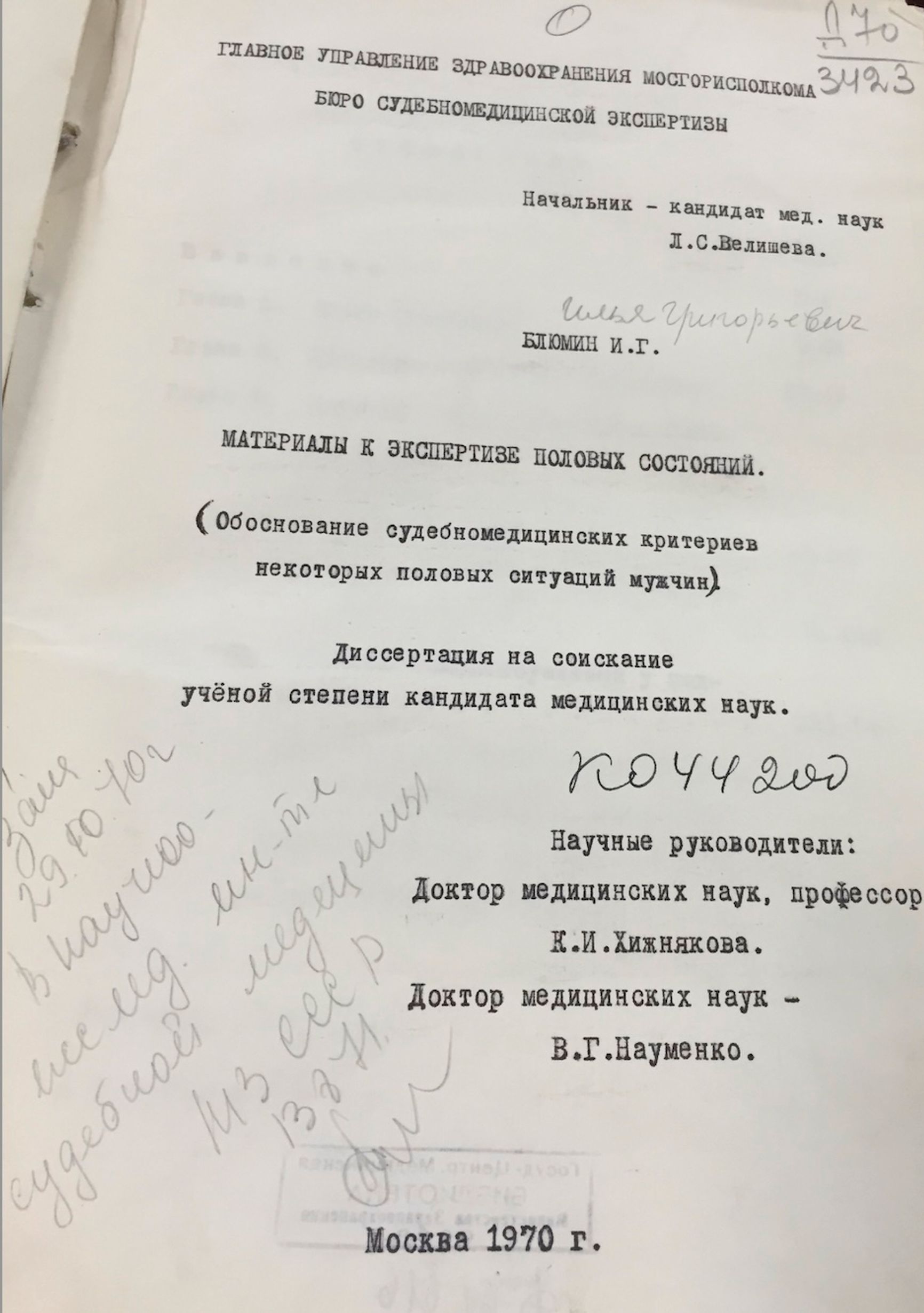 Блюмин И. Г. Материалы к экспертизе половых состояний (Диссертация, 1970).