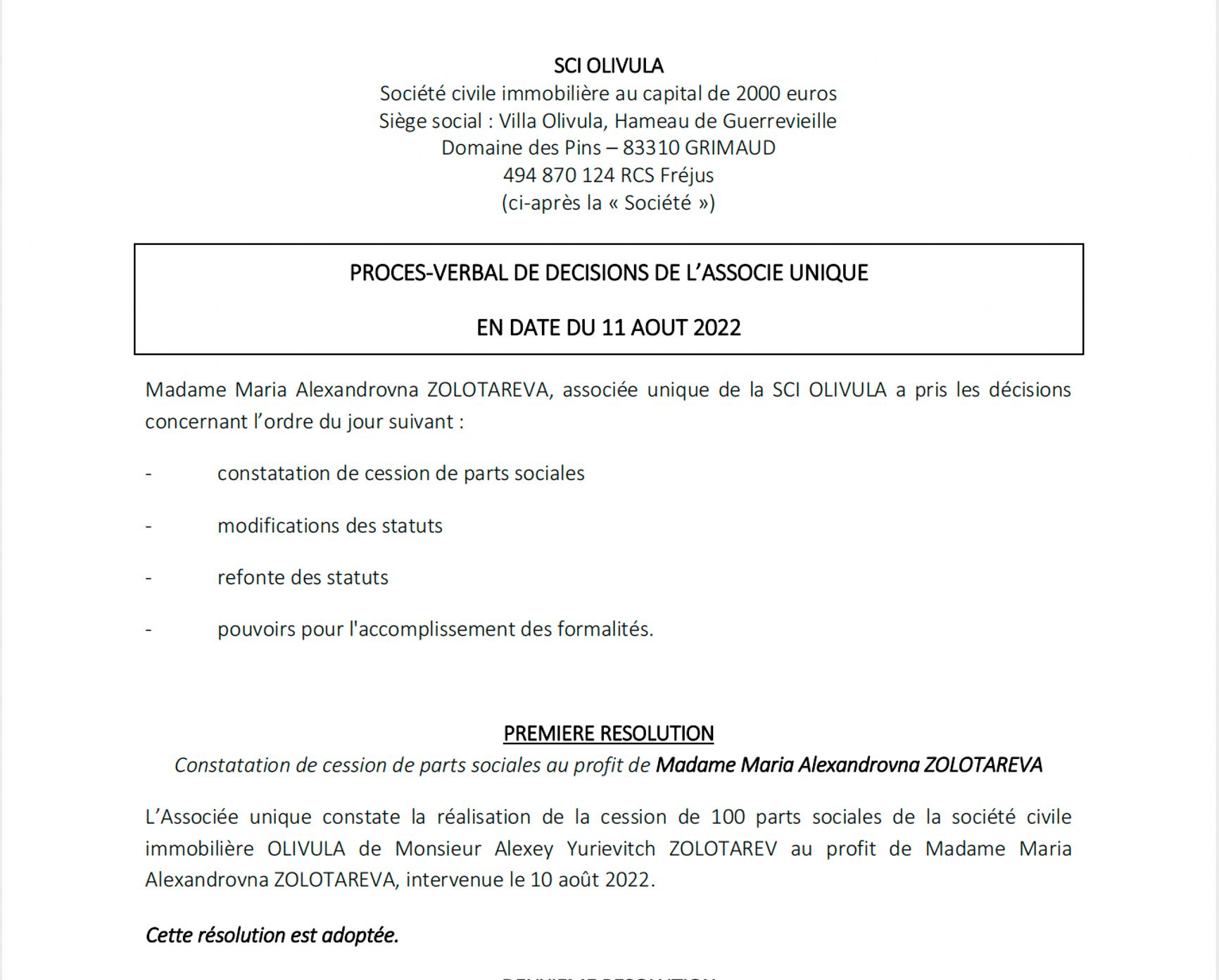 Раньше Olivula была записана на самого Алексея Золотарева, но в 2022 году, после полномасштабного вторжения России в Украину, он переписал акции на жену.