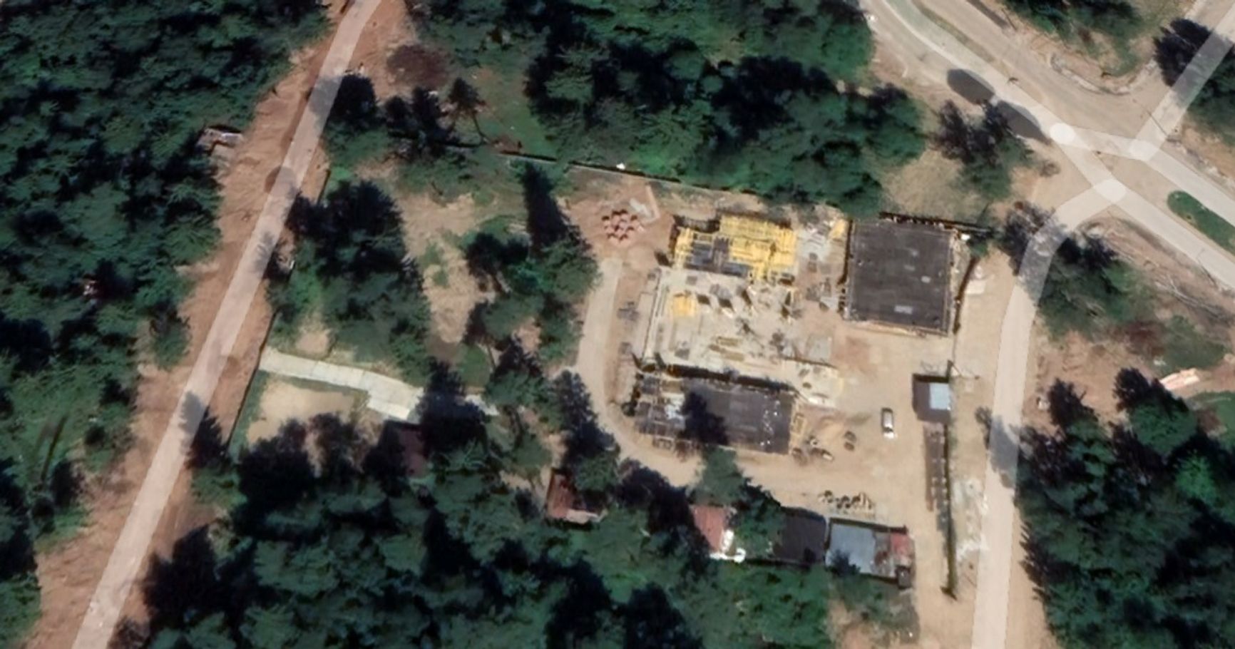Соседние участки также в Росреестре записаны на «Российскую Федерацию». Судя по снимкам со спутника, сразу после покупки земли Костюковы вырубили деревья и приступили к строительству дома на 60-ти сотках внешне объединенных участков.