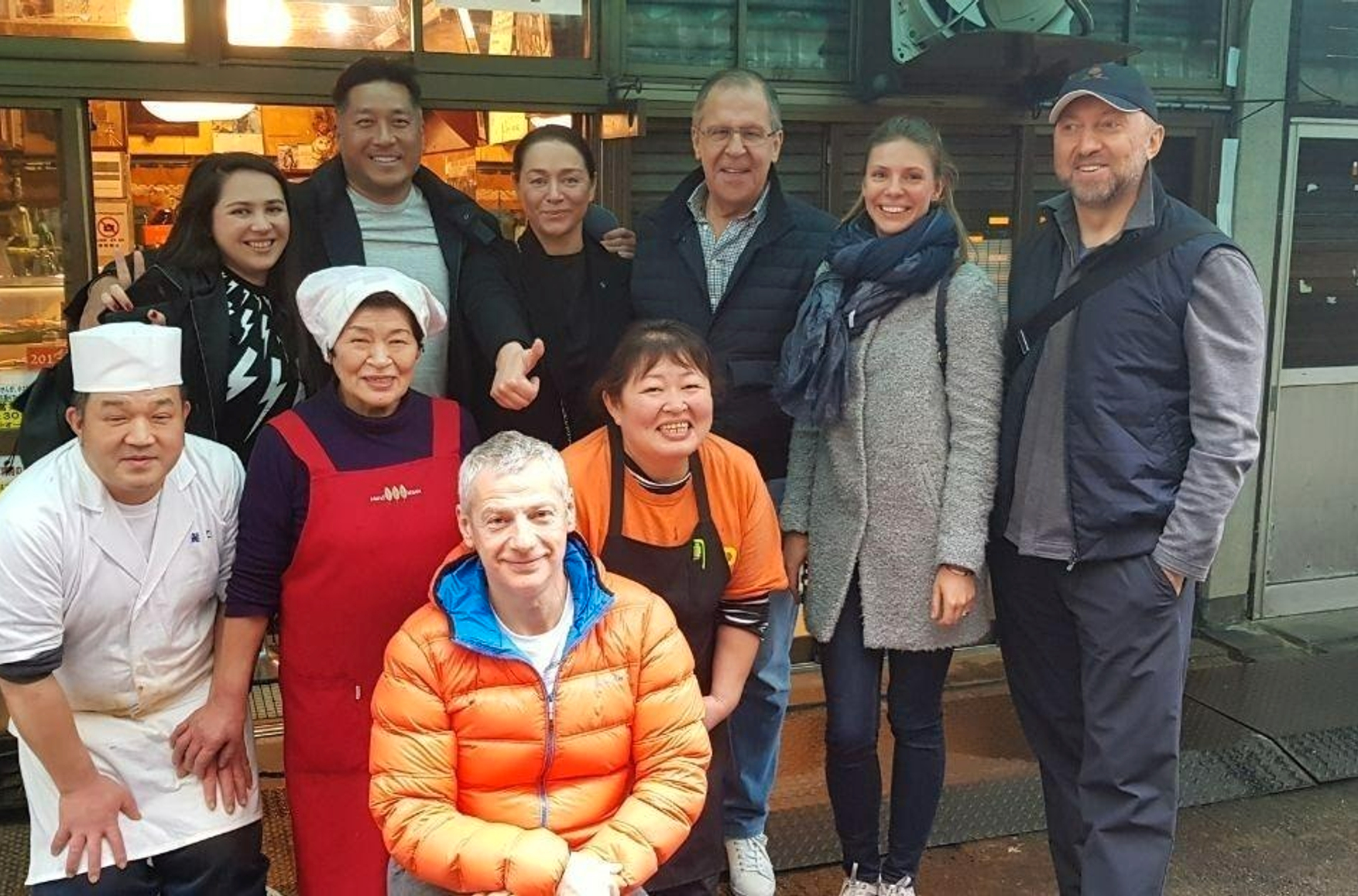 Это фото было сделано в ходе официального визита Лаврова в Японию в конце марта 2018 года, в ходе которого министр встречался со своим японским коллегой Таро Коно и среди прочего просил японских коллег установить местонахождение Сергея Скрипаля и его дочери Юлии, которые были ранее в том же месяце отравлены «Новичком» в Солсбери (напомним, The Insider и Bellingcat удалось установить, что отравление было совершено сотрудниками ГРУ Александром Мишкиным, Антолием Чепигой и Денисом Сергеевым).
