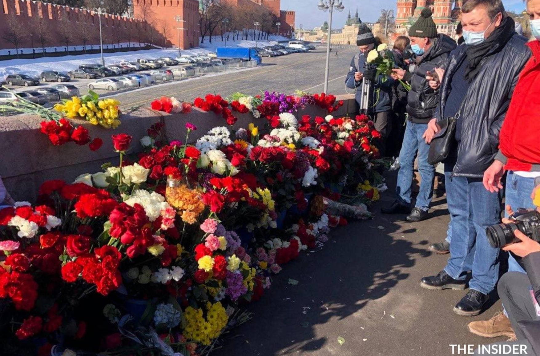 В Москве проходит акция памяти оппозиционного политика Бориса Немцова. Несколько тысяч людей принесли цветы и свечи на Большой Москворецкий мост — к месту, где 6 лет назад был застрелен Немцов. Время от времени у места возложения цветов собиралась очередь из десятков человек. Цветы возложили политики Михаил Касьянов и Григорий Явлинский, также приехала племянница Немцова Евгения. Полицейские дежурили по периметру моста. The Insider публикует фоторепортаж с места событий.