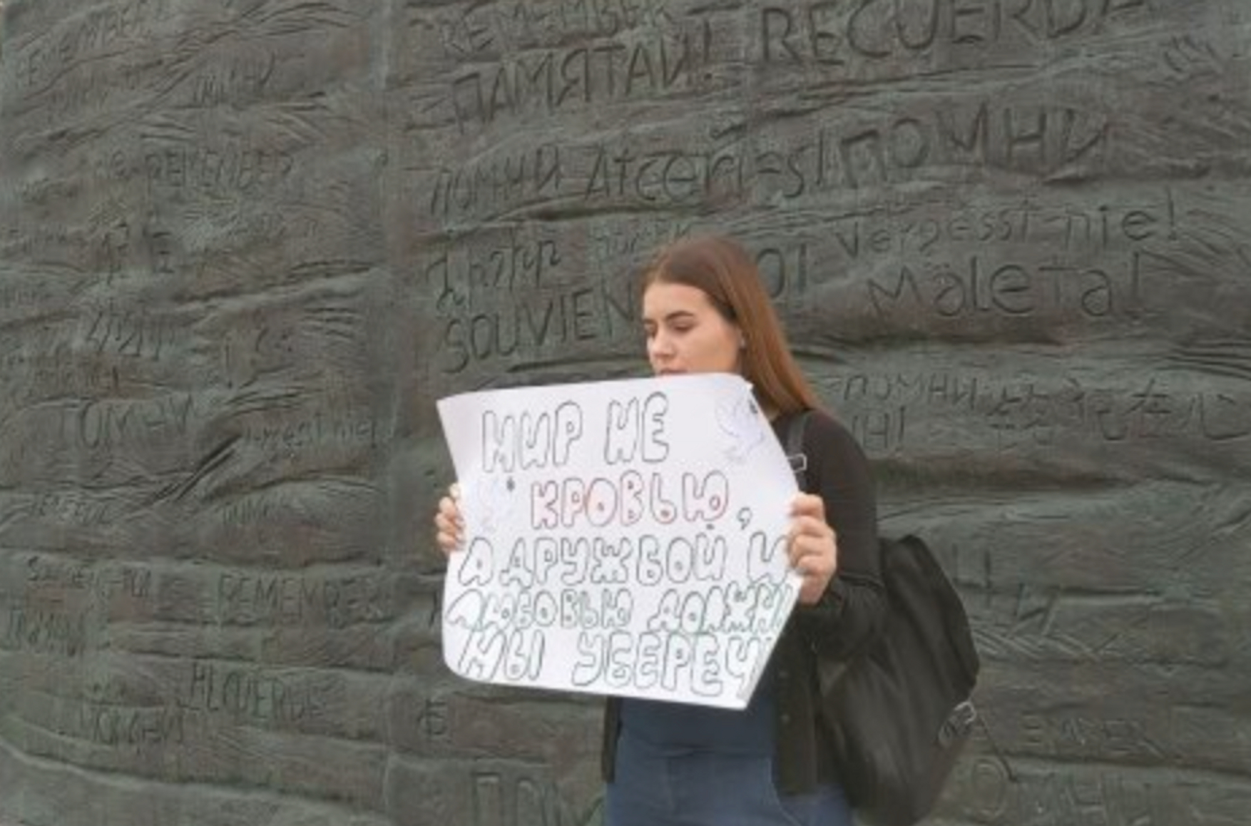 Полицейские задержали Антона Аптекаря, Андрея Кизевальтера, троих девушек, чьи имена неизвестны, а также одного несовершеннолетнего участника акции и Петра Рыбакова из прокремлевского движения SERB. Кроме того, силовики задержали пикетчицу Татьяну Матвееву с плакатом «Мир не кровью, а дружбой и любовью должны мы уберечь».