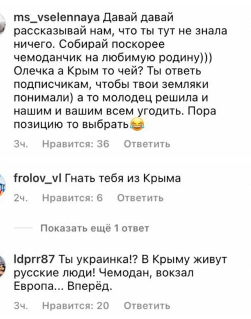2 октября Ольга Валеева спела песню «Червона калина», ролик девушка опубликовала в Instagram. Он быстро разошелся по «патриотическим» пабликам с оскорблениями Валеевой. По ее словам, ей начали писать в директ угрозы и сотни гневных комментариев.