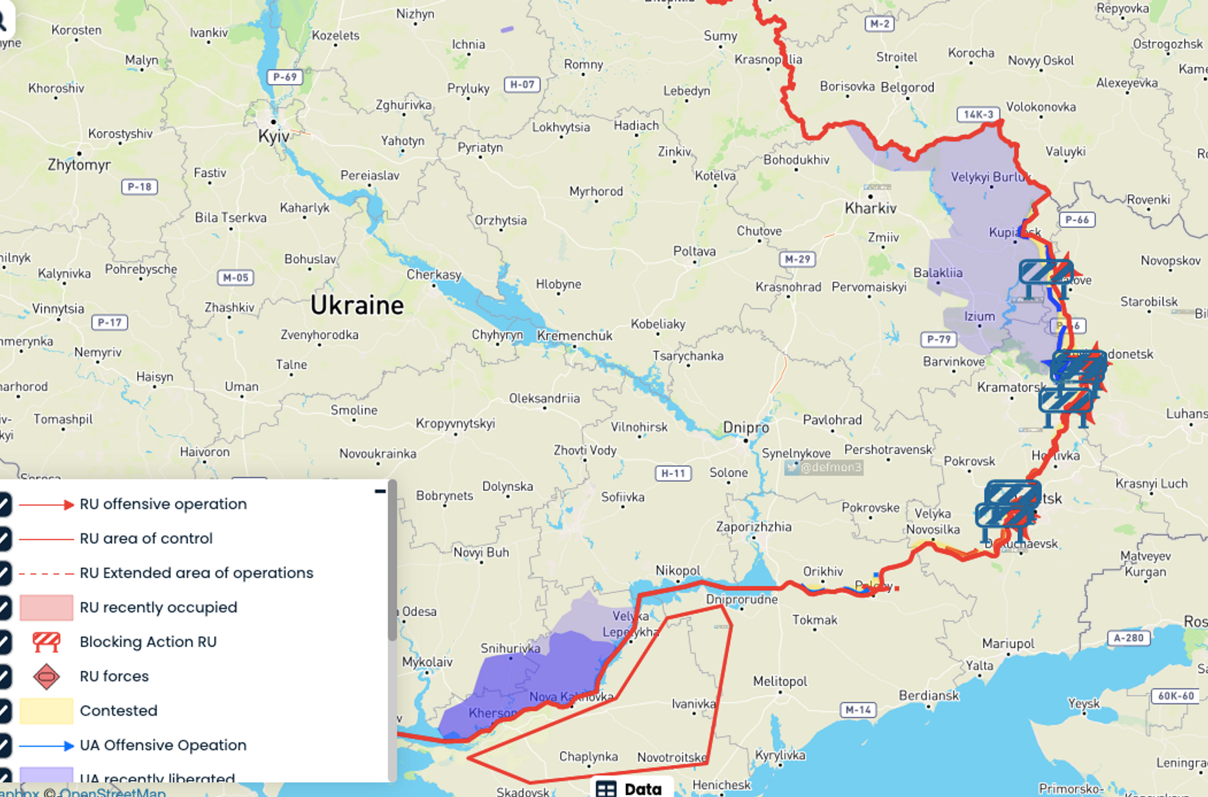 Заместитель начальника Главного оперативного управления Генштаба ВСУ Алексей Громов сообщил, что силы обороны Украины в ходе наступательной операции вышли на рубеж по Днепру, освободили до 5580 квадратных километров территории и 198 населенных пунктов. По его словам, российские военные сейчас перебрасывают наиболее боеспособные войска с правого берега Днепра на другие участки фронта. Возможно, это подкрепление перебросят в Донецкую область, эти части также могут быть переброшены на усиление группировок в Запорожской или Луганской областях или же использованы при попытке повторного наступления со стороны Беларуси, если этот план решат реализовать.