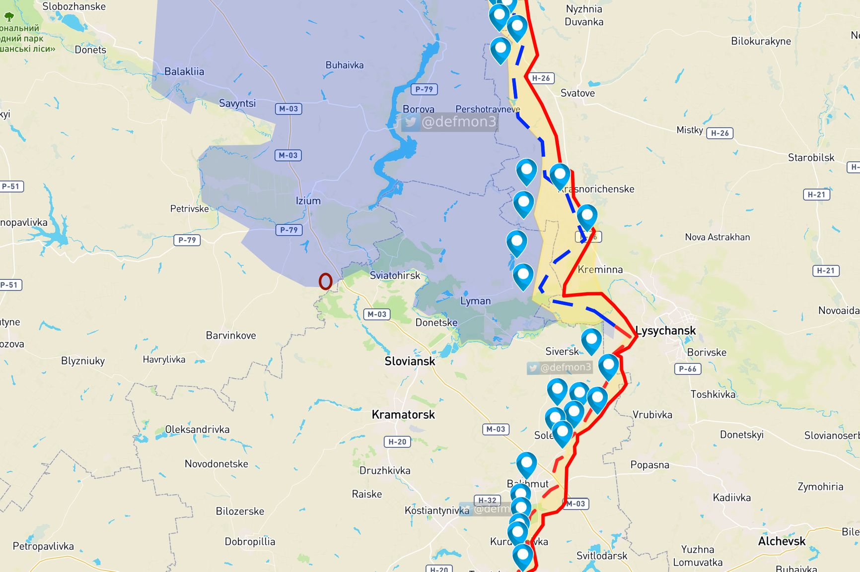 Также продолжаются обстрелы Белогоровки в Луганской области. По мнению аналитиков, таким образом российские военные отвлекают силы ВСУ от Кременной. Также появилось много свидетельств высокой активности российских войск в районе Верхнекаменки, а именно — около Лисичанского НПЗ. Def Mon отмечает, что Верхнекаменка обеспечивает россиянам укрытие и наблюдательные пункты.