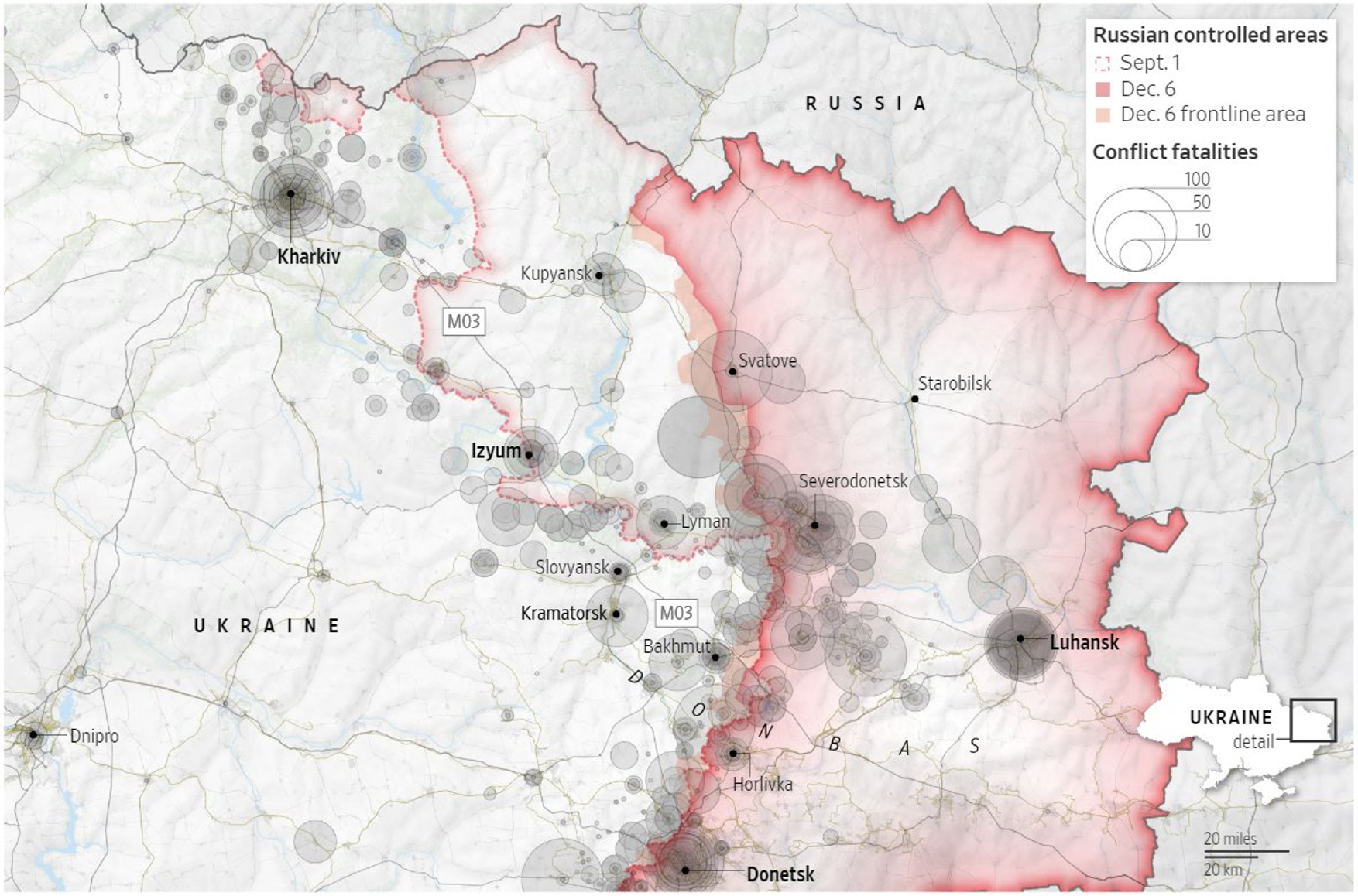 Русская служба Би-Би-Си и «Медиазона» по открытым источникам подтвердили гибель уже более 10 тысяч российских военных в Украине. По состоянию на 9 декабря в их числе 430 мобилизованных — это на 104 человека больше, чем две недели назад. Список погибших, который издания ведут с начала войны, может содержать на 40–60% меньше имен погибших, чем реально захоронено в стране.