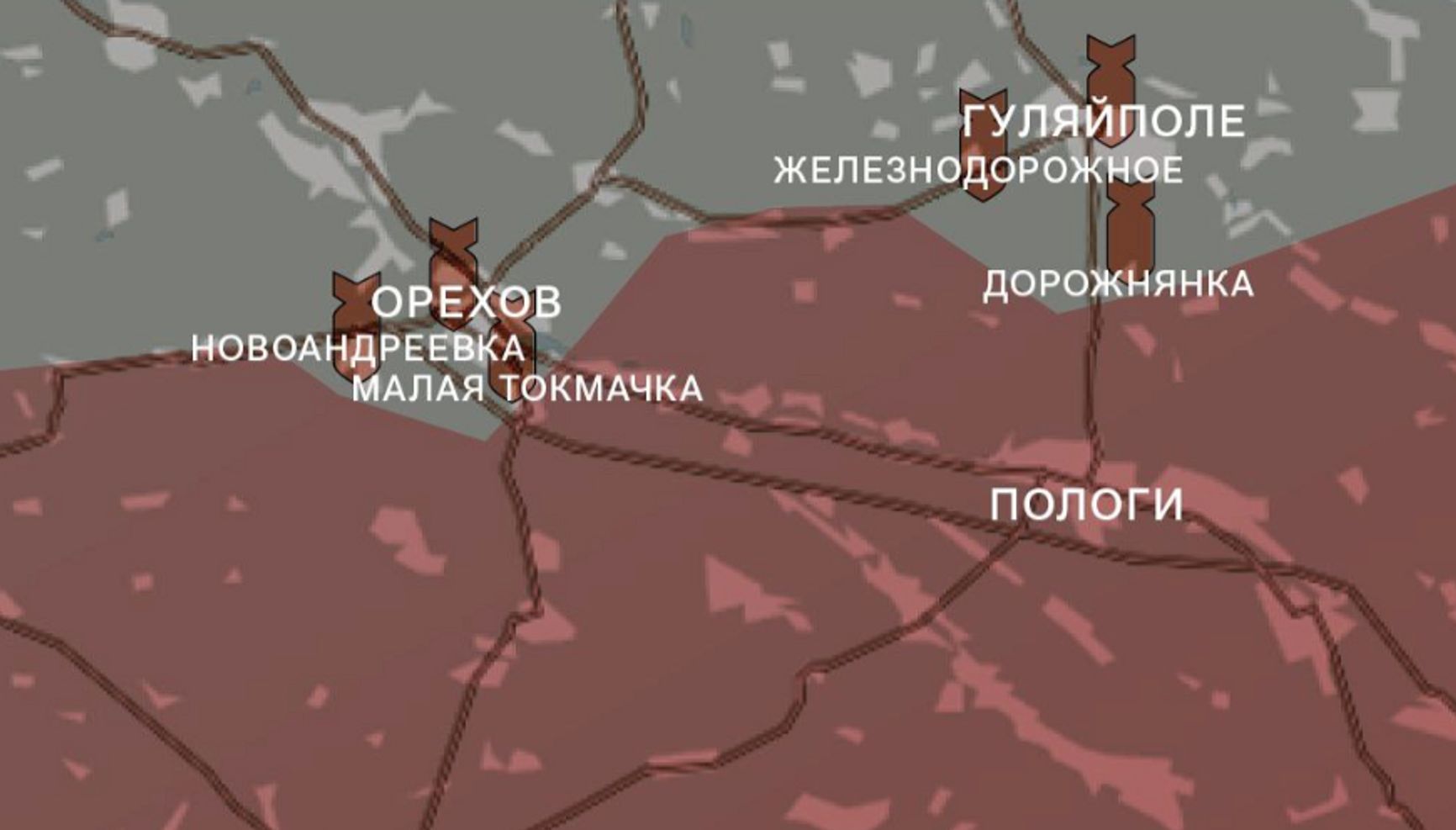 На Запорожском направлении, по данным пропагандистского WarGonzo, российская артиллерия нанесла удары по населенным пунктам Новоандреевка, Орехов, Малая Токмачка, Железнодорожное, Гуляйполе и Дорожнянка.