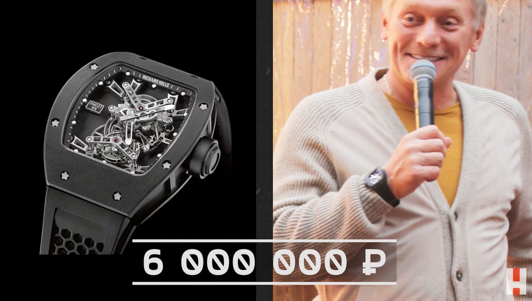 Песков и ранее был замечен с аксессуарами, стоимость которых во много раз превышает его ежемесячный доход. Так, в 2015 году на свадебных фото с Татьяной Навкой на его руке заметили часы Richard Mille стоимостью 37 млн рублей. Официальный доход Пескова тогда составлял 9 млн рублей в год.