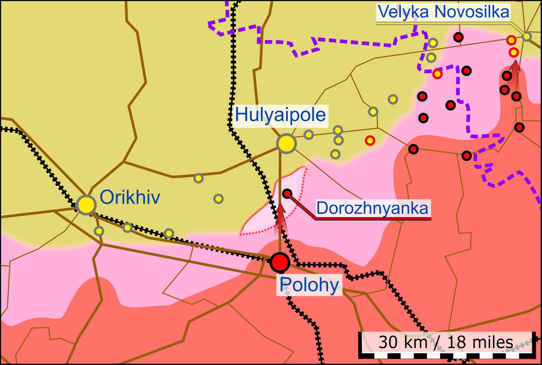 Назначенный Россией представитель «администрации» Владимир Рогов заявил, что контроль над стратегически значимым селом Дорожнянка открывает для ВС РФ возможность наступления на Гуляйполе.