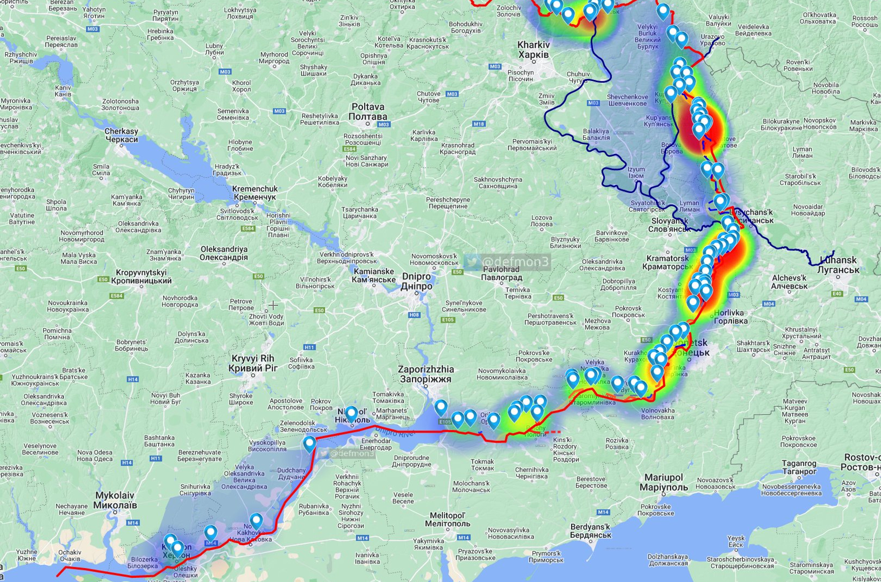 На Купянском и Лиманском направлениях под огневое действие россиян попали районы 19 населенных пунктов. Среди них Двуречная, Купянск, Кисловка, Котляровка, Крохмальное и Стельмаховка, Макеевка, Площанка и Диброва (направление на Кременную), сообщает Генштаб. В то же время военный аналитик Def Mon написал, что в 2,5 км к северо-западу от Дибровой украинские позиции были обстреляны из «Градов», это свидетельствует о том, что территория все еще под контролем российских военных.