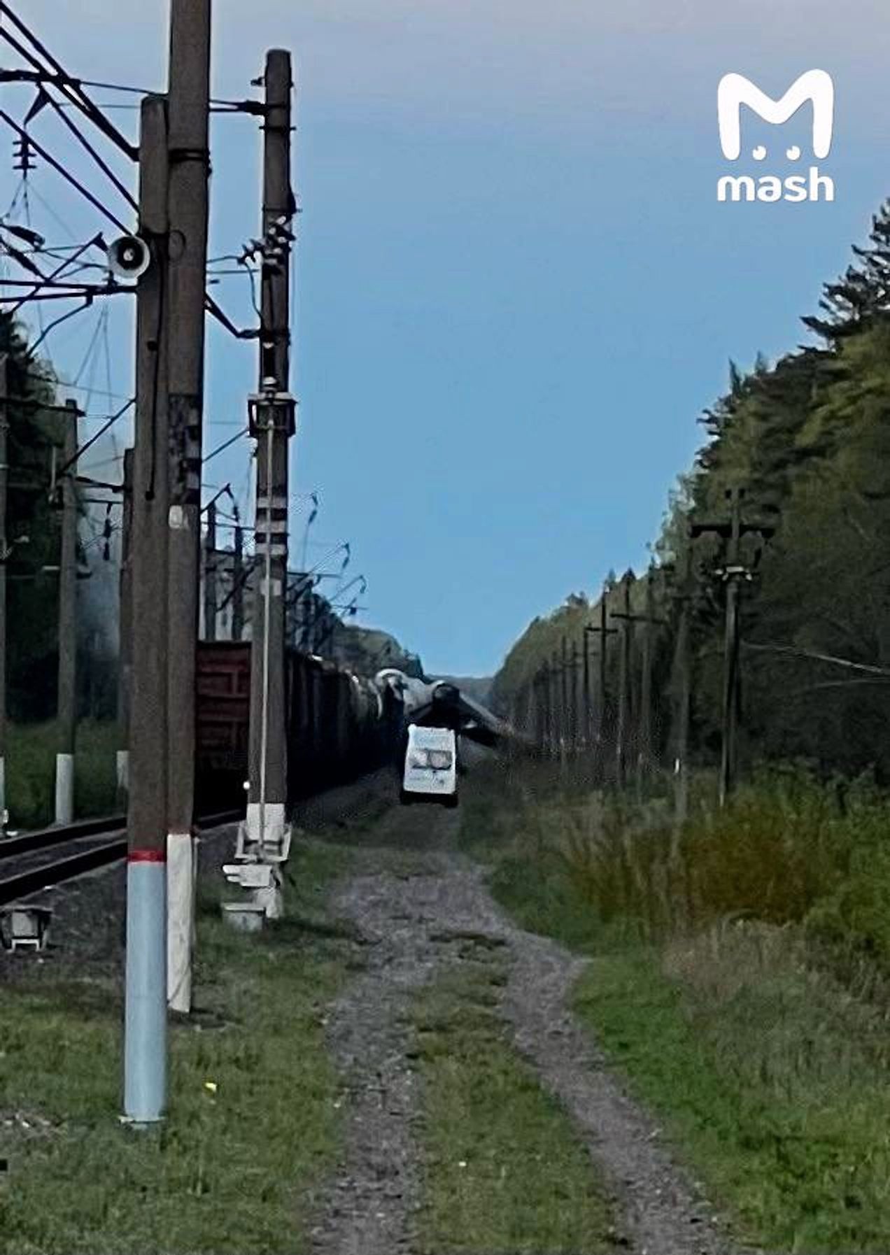 Один из местных жителей, как сообщает «Лента.ру», рассказал, что перед сходом поезда с рельсов были слышны два взрыва. В РЖД заявили, что с рельсов сошли локомотив и семь вагонов, а причиной происшествия стало «вмешательство посторонних лиц». Движение на участке, который находится примерно в 60 км от границы с Украиной, было остановлено. Поезд принадлежит «Белорусской железной дороге» и следовал из белорусского Гомеля в Брянск.
