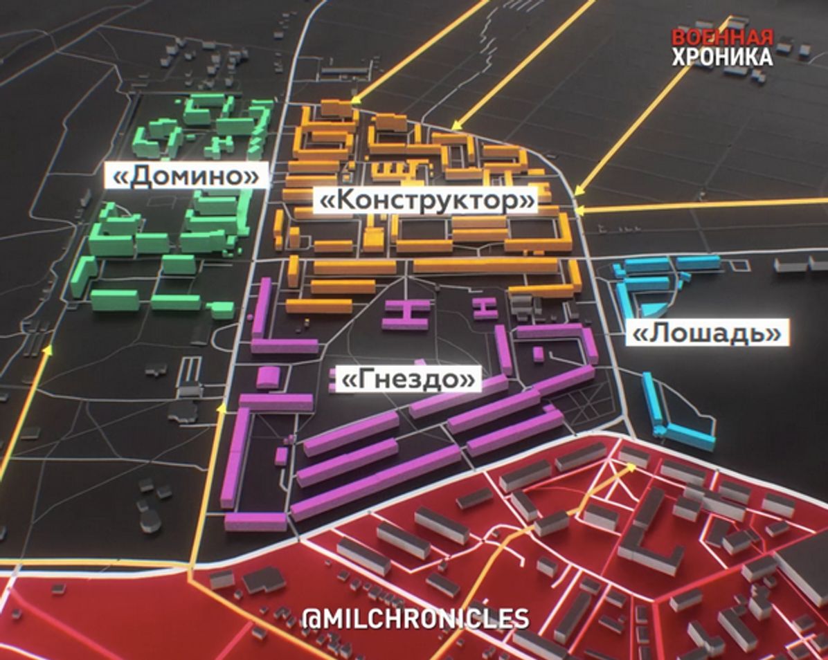 Связанный с ЧВК Вагнера «военкор» Александр Симонов публикует репортаж о ночных боях в Бахмуте, в котором Евгений Пригожин демонстрирует труп убитого американского добровольца и на карте показывает, какую часть города удерживают ВСУ. Если верить Пригожину, украинцы остаются только в самом западном квартале города, который в российских источниках обычно называют «Домино».