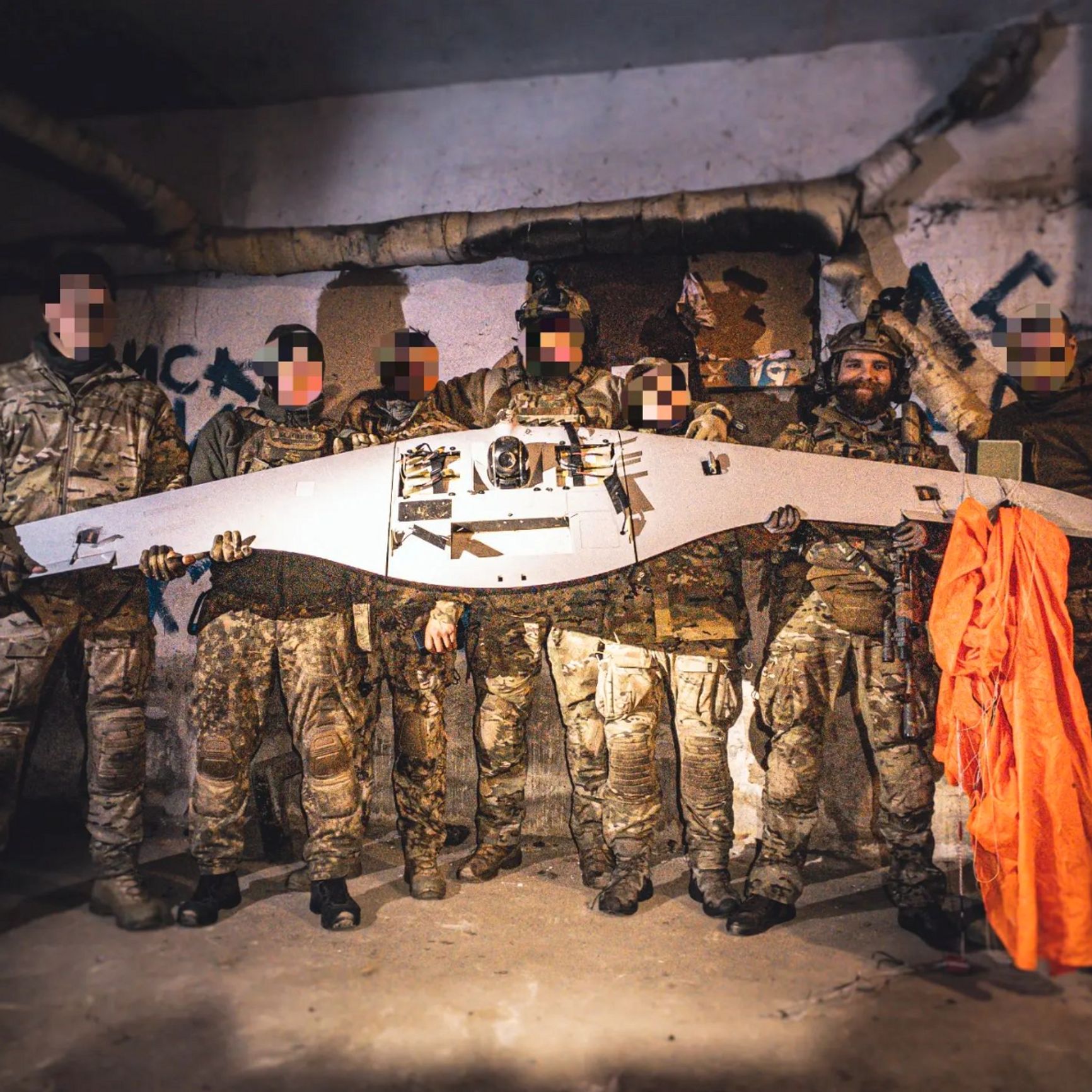 Украинские военные демонстрируют взятый в качестве трофея российский БПЛА SuperCam S350 (который Воздушные силы Украины по ошибке назвали SuperCum, чем породили волну мемов).