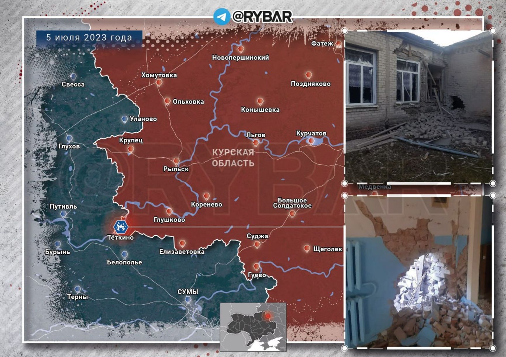 В Теткино Курской области попали 12 снарядов. Повреждено здание школы и жилой дом, жертв нет.
